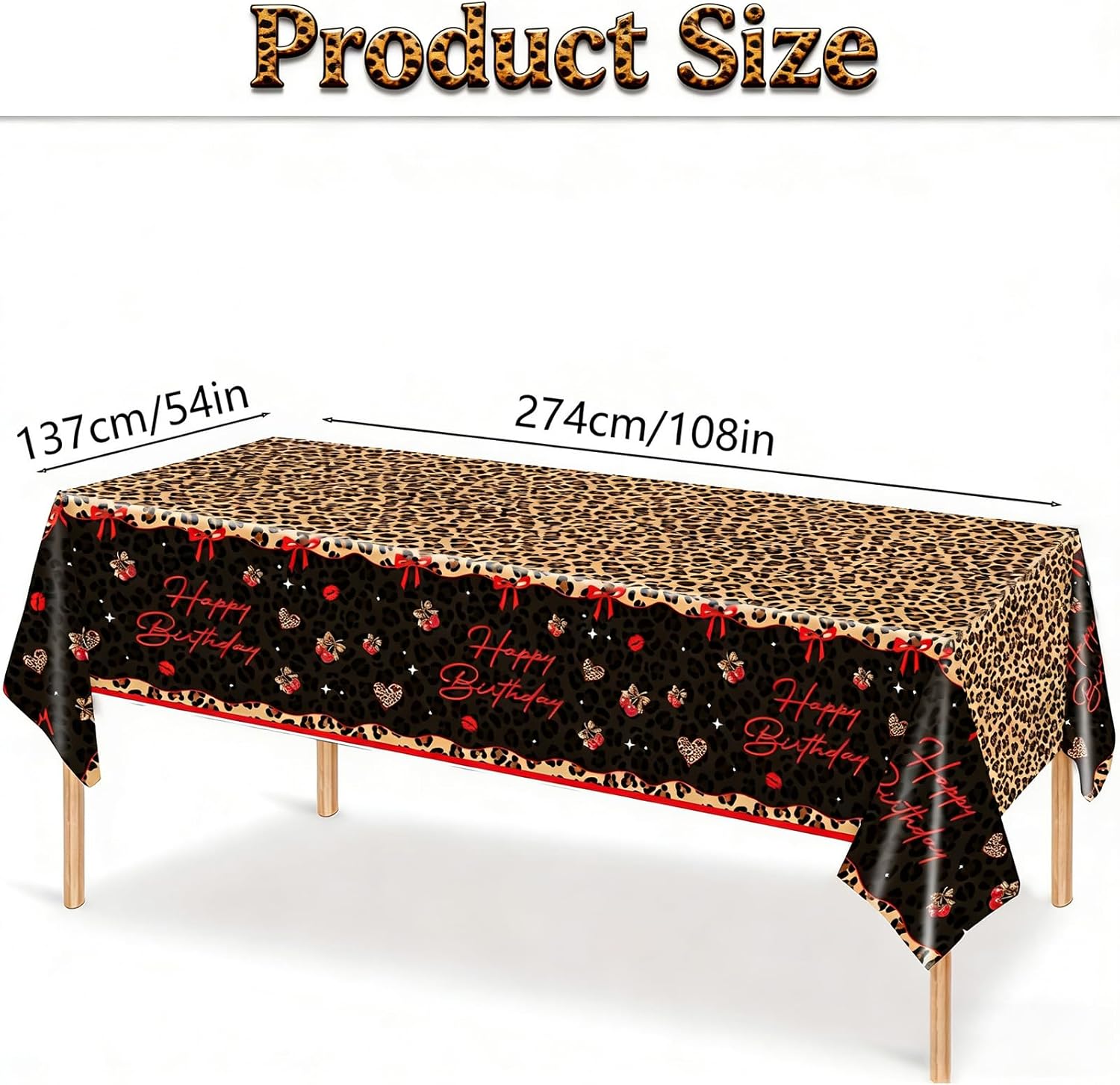 Make your party decorations stand out with this stylish leopard print tablecloth. Designed for both everyday meals and special celebrations, it combines eye-catching patterns with practical functionality. Features: Bold & Stylish Design: Featuring trendy leopard spots in a vibrant red and black color scheme, this tablecloth adds instant visual appeal to any gathering. Quality Material: Made from high-quality PE plastic, this tablecloth is naturally soft and smooth to the touch. The durable construction stands up to everyday use without tearing easily. Perfect Size for Most Tables: Each tablecloth measures 54 x 108 inches (137 x 274 cm), making it ideal for standard rectangular tables. It fits perfectly on picnic tables, buffet tables, and folding tables. Choose from sets of 2, 3, or 4 depending on your needs—great for large parties or keeping extras ready for future events. Waterproof & Easy Cleanup: This disposable tablecloth is designed to spend less time cleaning and more time enjoying your guests. After the party, simply gather it up and throw it away. Versatile for Any Occasion Not just for birthdays—this leopard print table cover works beautifully for many events: ✔Bachelorette parties ✔Bridal showers ✔Wedding receptions ✔Christmas gatherings ✔Tea parties ✔Family reunions ✔Camping trips Keep a few on hand so you're always ready for the next celebration.