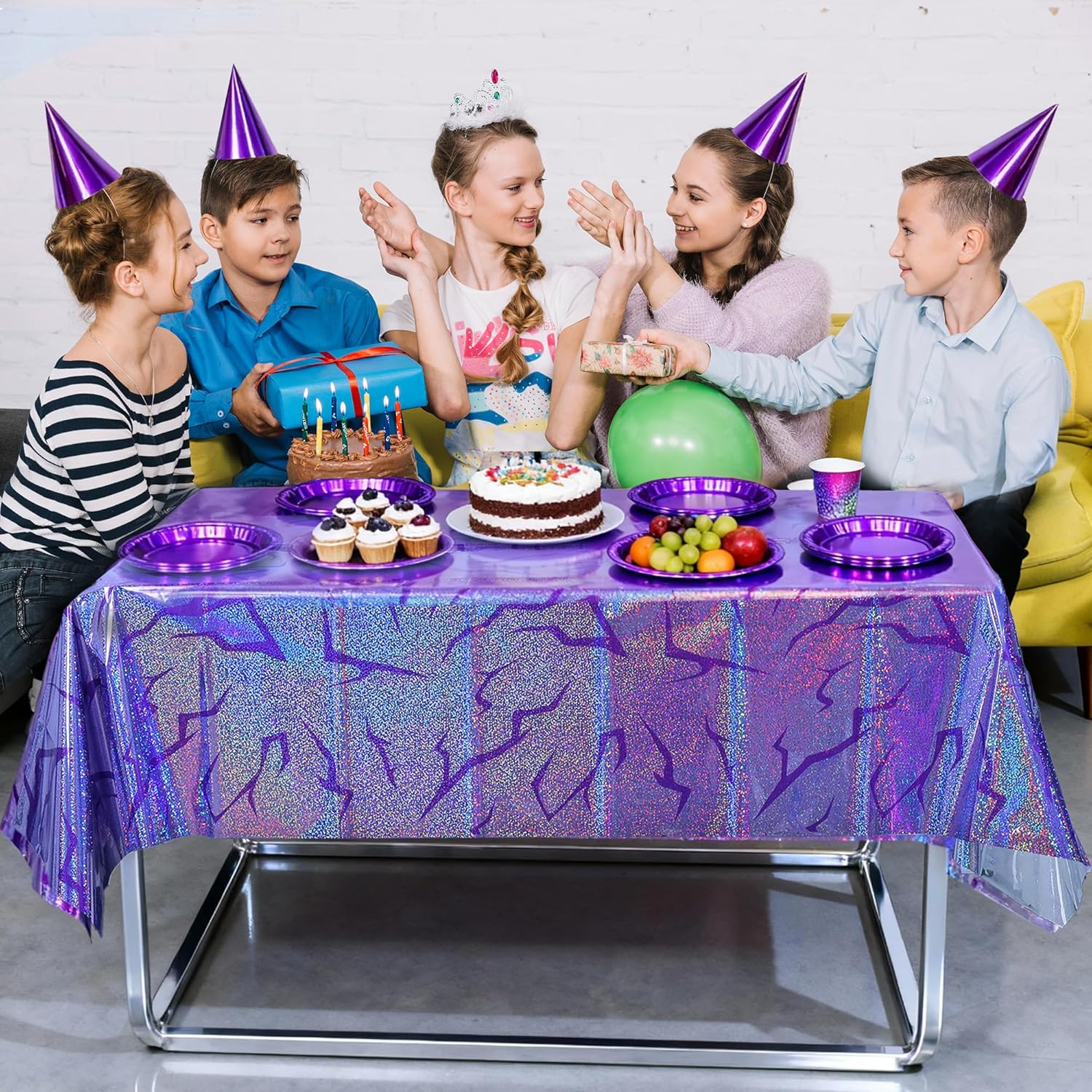 3PCS K🟣pp Demon Hunters Birthday&Graduations Tablecloth Decorations, Purple Sparkling Holographic Laser Demon Energy Pattern Tablecover |108×54in| Korean Idol Movie Decor for Kids’Party Birthday Graduation Bachelor