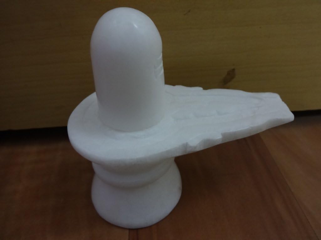 Natural White Stone Shivling 4"inch ~ Shivalingam Shivling Shiv Ling Idol Statue Figurine For Home Decor and Pooja Shiv Ling Idol Murti With Yoni Base for Pooja and Peaceful Meditation