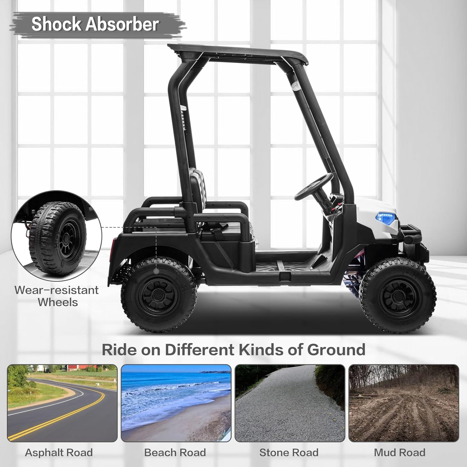 24V 2 Seater Kids Ride on Car, 4WD Golf Cart with Parent Remote Control, 4x4 Motors Ride on Truck with Roof, Toddler Electric Vehicle with Storage Box, Foot Pedal, Music Player, Lights, Horn, White