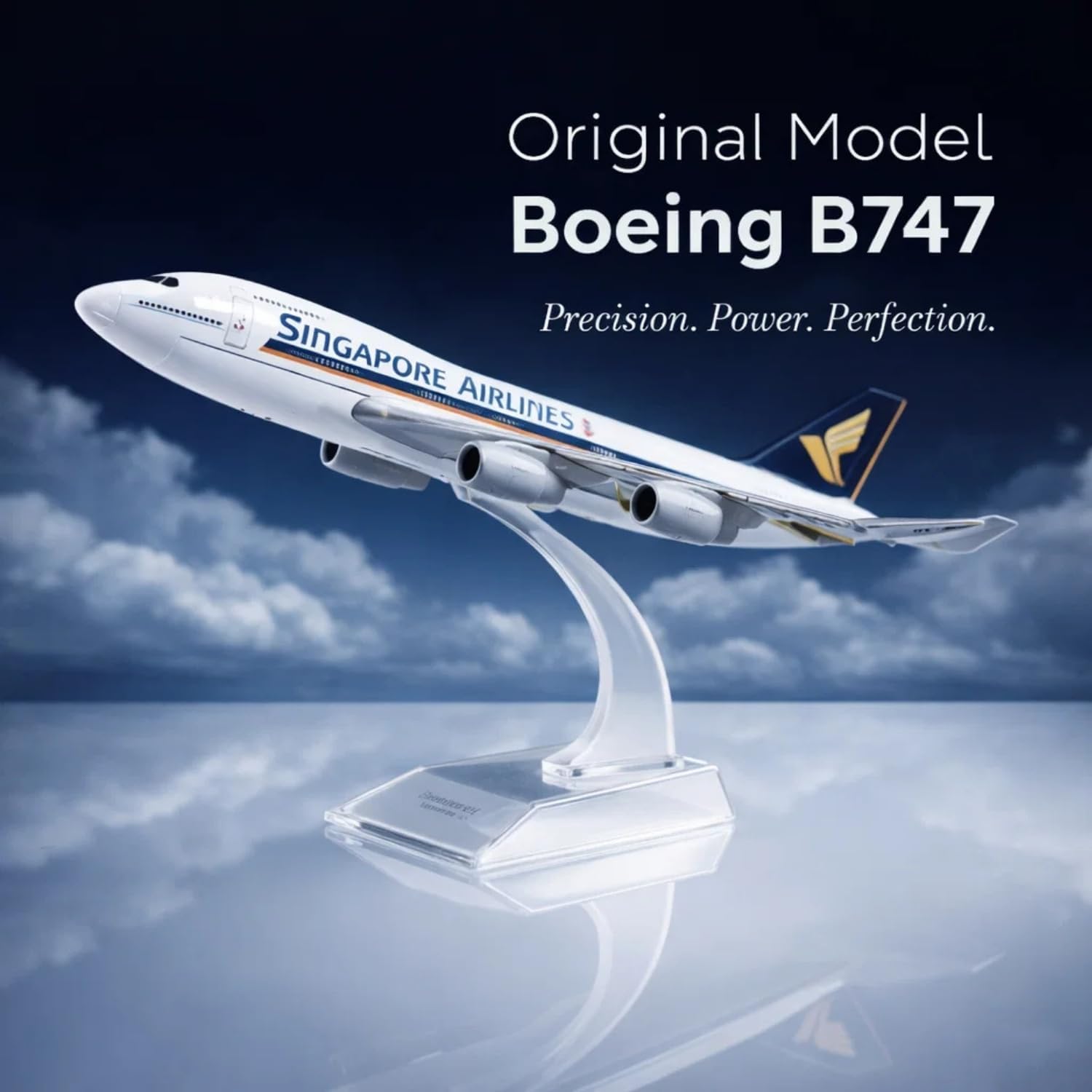 Bring home the grandeur of international aviation with the Singapore Airlines B747 1 : 300 Metal Die-Cast Aircraft Model — a finely crafted miniature that captures the beauty and innovation of modern flight. At 16 cm in length, this compact yet detailed airliner offers an ideal blend of elegance, authenticity and practicality for collectors, aviation professionals and decor enthusiasts alike.Crafted with Precision & Purpose:The B747 model is constructed from die-cast metal and reinforced ABS components to achieve both strength and refinement. Each section — the cockpit, wings, tail and engine pods — is carefully shaped to mirror the graceful architecture of the real aircraft. Its smooth finish and accurate paintwork highlight the Srilankan Airline color scheme and signature tail logo, creating a miniature that is both realistic and visually appealing.The metal composition ensures durability while maintaining a balanced weight that feels solid in hand and stable on display. It resists chipping and fading, allowing it to retain its shine and polish for years, even with regular use or movement.Elegant Acrylic Stand:Each model comes with a transparent acrylic display stand that holds the aircraft in a flight-takeoff position. The crystal-clear base adds sophistication while focusing attention on the plane itself. The stand is lightweight, easy to assemble and can be detached for storage or transport. When placed on a desk or shelf, it creates a captivating “in-motion” display effect that adds life to any space.A Perfect Gift for Aviation Fans:Whether you’re celebrating a special occasion or simply want to inspire someone who loves flying, this B747 metal model makes an excellent gift. It’s ideal for pilots, students, travel agents and frequent flyers who cherish air travel and aircraft design. Its sleek look and symbolic value make it a conversation starter in both professional and personal spaces.Educational & Inspirational Value:Beyond being a display item, this model is an effective visual aid for explaining aerodynamics, airplane components and mechanics. It encourages interest in aviation and STEM subjects among young learners. The B747 miniature reminds its owner of progress, discipline and innovation — qualities at the heart of modern engineering and air travel.Compact Design & Display Versatility:At 16 cm in length, this airplane model offers a perfect balance between detail and portability. It fits effortlessly on office tables, glass showcases or bedroom shelves without taking excess space. Its metallic paint reflects light beautifully, and the clear stand gives the appearance of flight — making it a charming addition to any decorative arrangement.Why Choose This B747 Model:– Die-cast metal construction with precise engraved details.– 1 : 300 scale for realistic proportions and visual impact.– Clear acrylic stand for a professional, in-flight display look.– Compact and lightweight for easy placement and storage.– Suitable for education, decoration and collection.– A symbol of flight, freedom and global connection.Conclusion:Celebrate the spirit of innovation and global travel with the Singapore Airlines B747 16 cm Metal Model. Its refined craftsmanship, durable structure and realistic finish make it more than just a toy — it’s a tribute to modern aviation and the passion for flight. Whether you display it at home, gift it to an aviation enthusiast or use it as an educational piece, this model brings a touch of wanderlust and engineering marvel to your world.