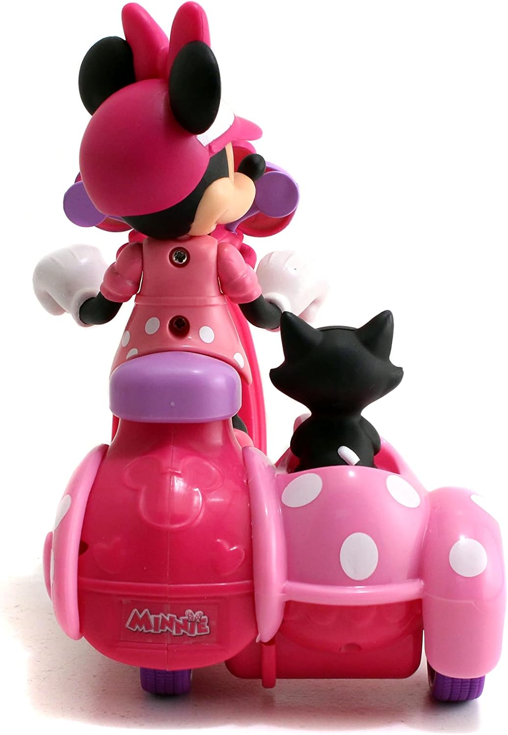 The Disney Minnie Mouse remote control scooter is sure to be a fast favorite with your little ones! The flashy Pink dotted RC scooter has one of the most recognizable characters in the drivers seat with Minnie Mouse. But, while Minnie is in the drivers seat, you're really the one in control with an easy-to-operate, wearable remote. Drive forward, on to adventure, but feel free to take some exciting spins along the way. Three AA and two AAA batteries required (not included). Ages 3+.