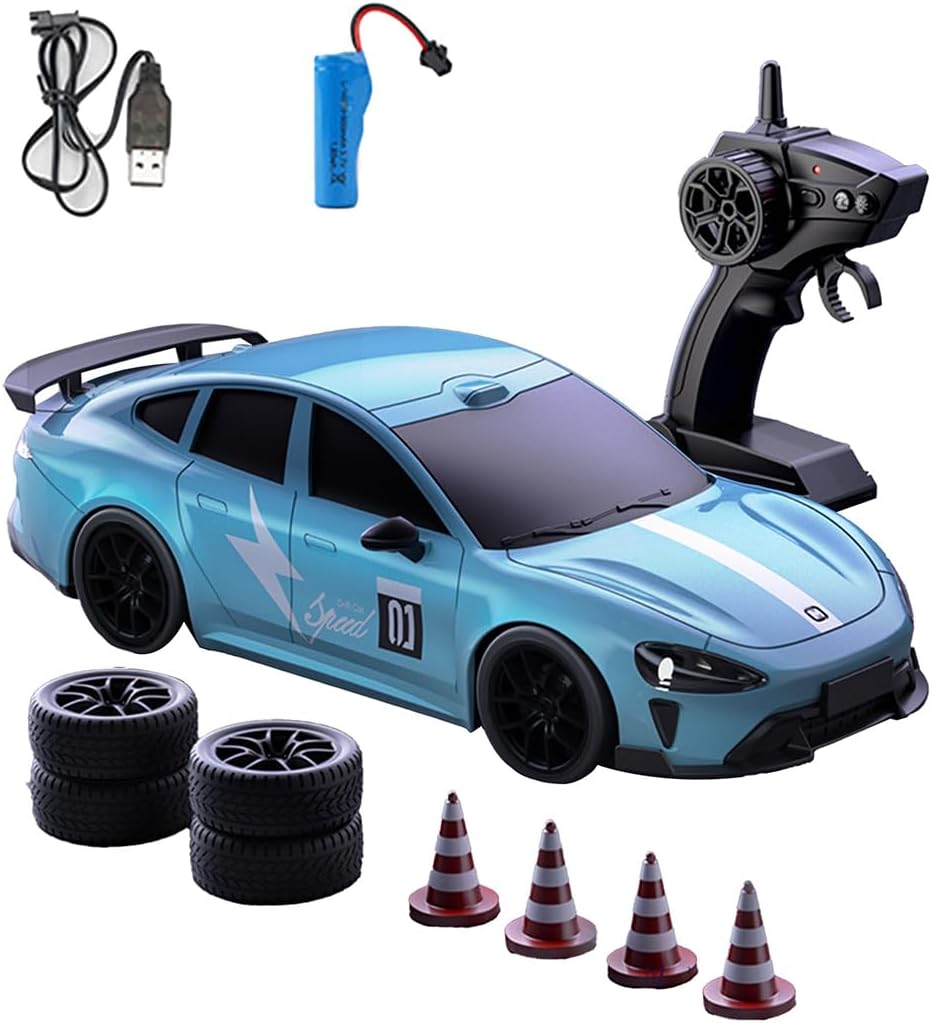 | Included Components | . remote control car × 1 . 2.4GHz remote controller × 1 . USB charging cable × 1 . racing tires × 4 . drift tires × 4 . traffic cones × 6 . screwdriver × 1 |