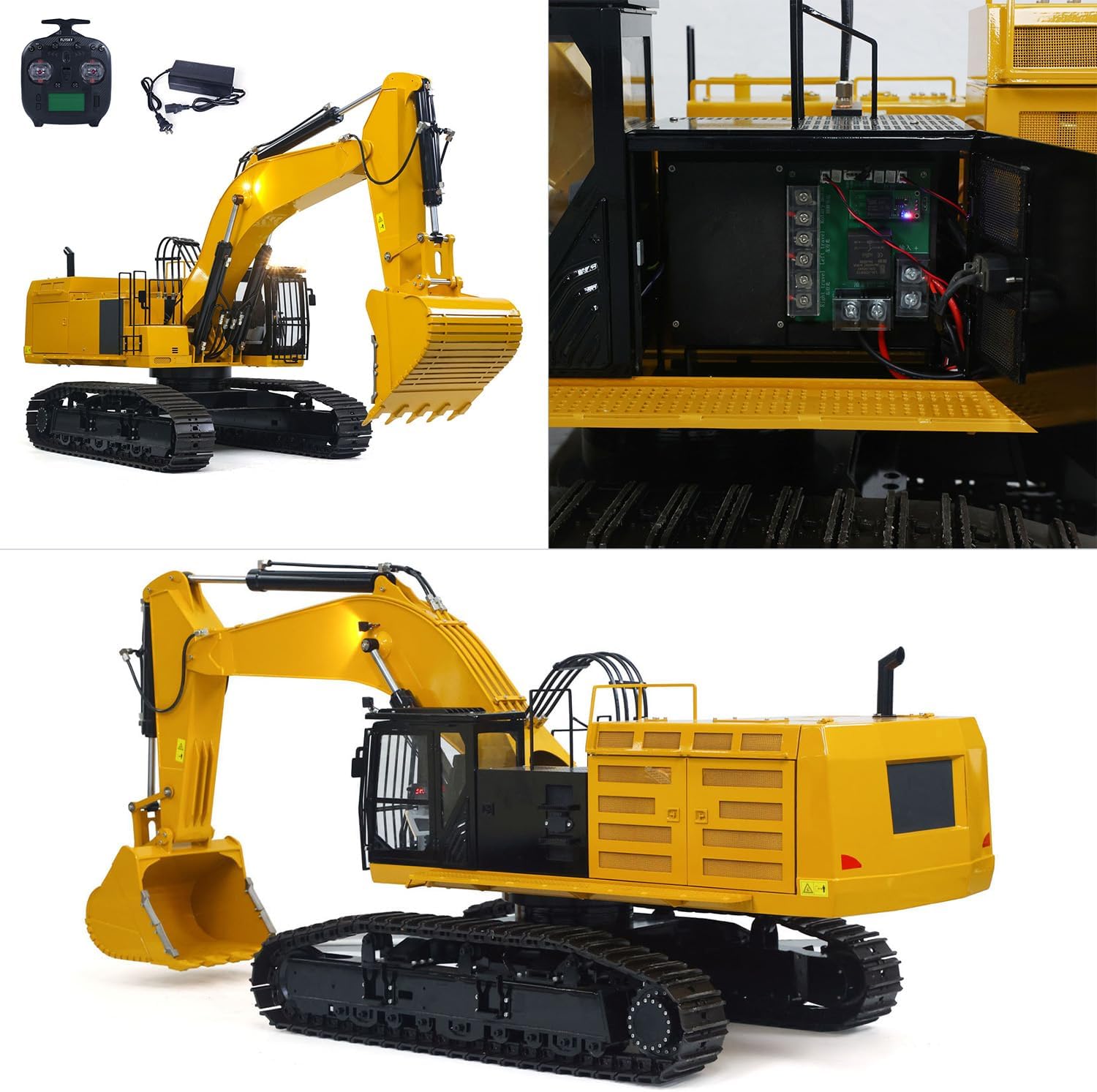 | Included Components | 1/8 390F RC Hydraulic Excavator Model, Motor, ESC, Servo, Sound System, Light System, Hydraulic System, FlySky Paladin PL18EV Remote Controller and Receiver, Battery, Charger |