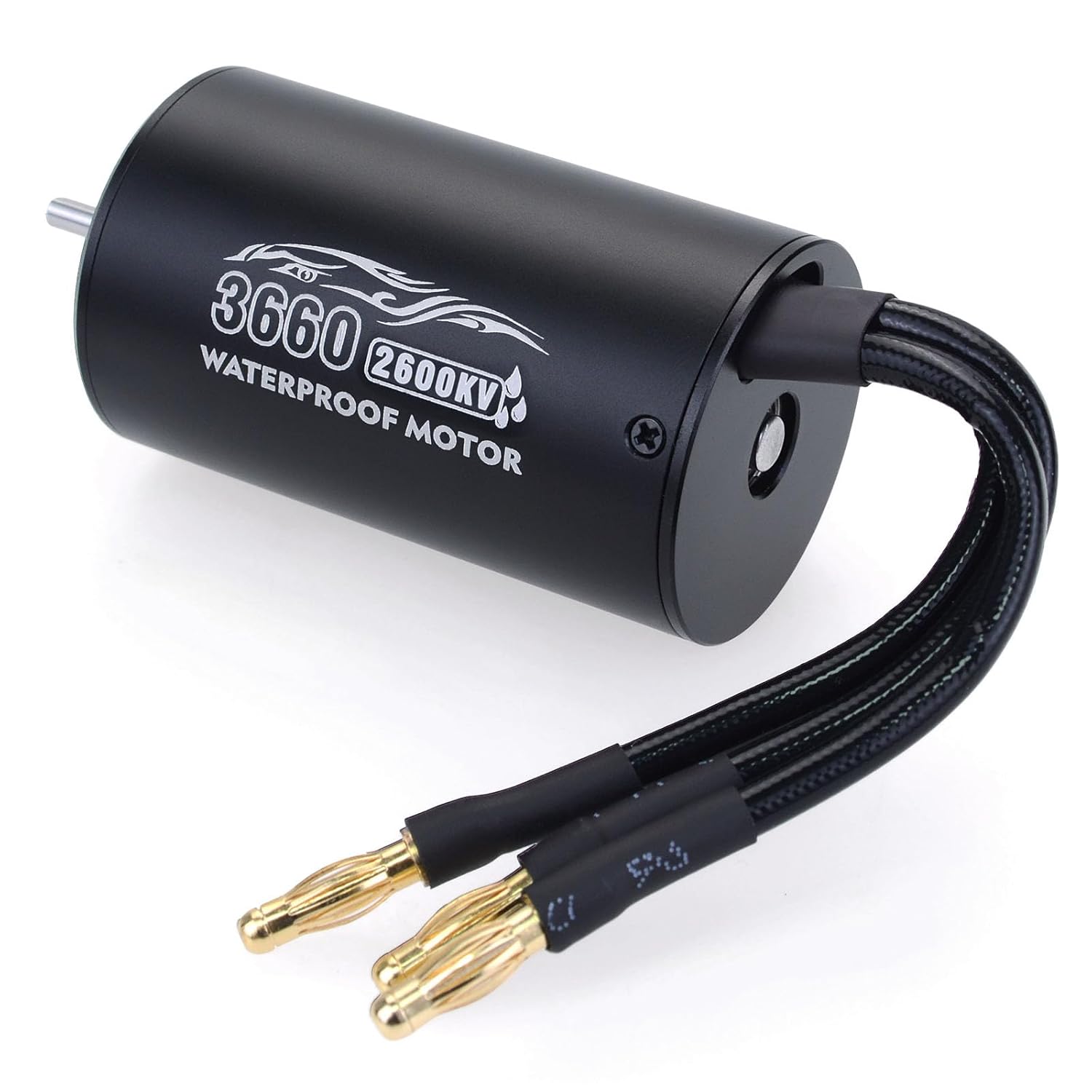Surpss Hobby Waterproof Brushless Motor 3650 2300KV High Speed 4 Polo Motor for 1/10 RC CarFeatures: Water-proof MotorSpecially designed for 1/10 rc car, a good choice for your rc car.High Purity Copper Windings Maximizes EfficiencyHigh RPM ABEC5 Oversized BearingsPrecision balanced rotor, removable/replaceable rotorSpecifications: Brushless MotorWatts: 900WMax voltage: <22V ; Max Amps: 41A; Max RPM: 50000Resistance: 0.0242ohmKV(RPM/Volt): 2300KVPlug type: 4mm golden banana plugShaft length: 15mmShaft diameter: 3.175mmDiameter: 36mmLength: 50mmWeight: 213gPackage1 X 3650 2300KV Brushless Motor1 X product manual