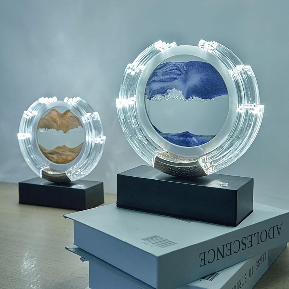 LED Dynamic Sand PictureRelaxationRelaxing Dynamic Sand Picture, Every time you turn the Dynamic Sand Picture Frame, you get a different image. Looking at the falling sand and the changing different landscape scenes, you will feel particularly calm and relaxed!Three color temperatures can be adjustedNatural light is also called warm light and neutral light. The light color is between cold light and warm light. It is suitable for creating an elegant and high-end atmosphere. The light color is more comfortable.Specifications:Product name: 3D Dynamic Sand Art Bedside Table LampLight Effect: Warm Light, Natural Light, White Light, Multi-level brightnessVoltage: ≤36VMaterial:Glass+Plastic+IronSize: 19* 21cm/7.5*8.3inNote: Syringe and needle are medical equipment and dangerous goods, so we cannot provide themPackage list:1*LED quicksand painting,Tips:1.When you just get it,if the sand is scattered or slant,flip it randomly to gather the sand to the bottom.2.Shaking the picture produce the bubbles to help with the sand flow down3.Flip it vertically,so that more bubbles can cover the sand to slow down the falling speed.4.Through playing it for long time,you will find it is much more beautiful with a longer falling time.If there are only a few slender sand lines falling down,get a slow and stable speed,don't worry,it's normal.It usually means you can get a perfect Quicksand Painting