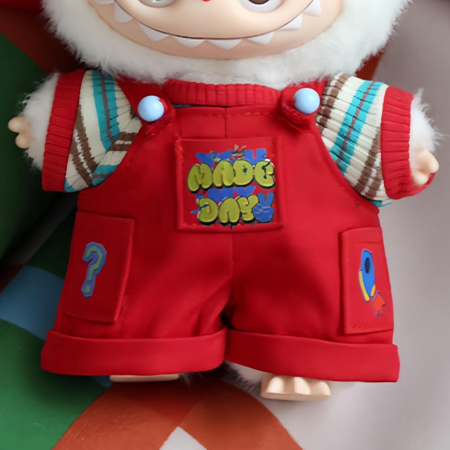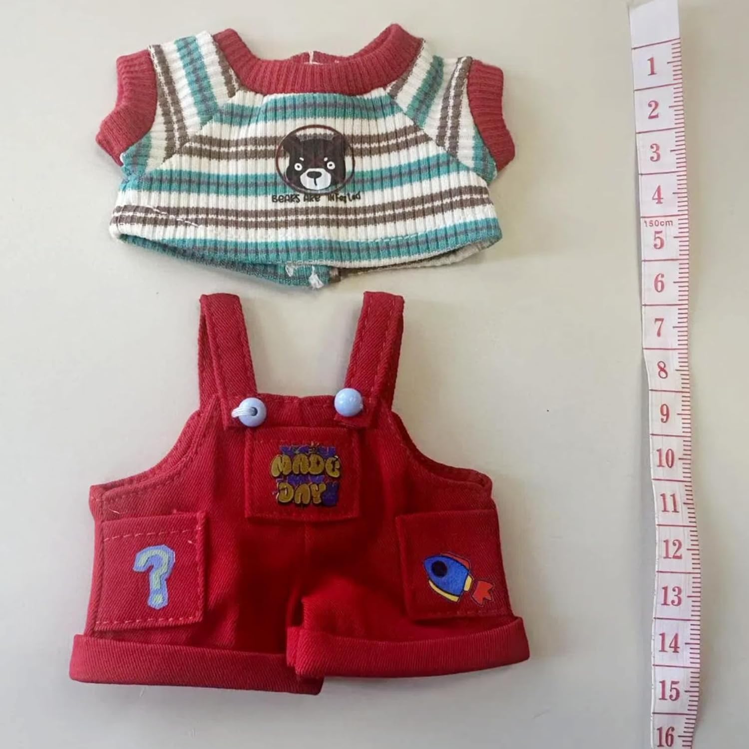 Dress your 6.7-inch dolls in style with this adorable 3-piece clothing set! The collection includes a charming striped T-shirt featuring a cute bear design in turquoise, brown, and white with red trim, paired perfectly with bright red overall shorts. The overalls come with fun decorative patches and functional front pockets, secured by button-style closures at the shoulders. The set is designed for easy dressing and undressing, making playtime more enjoyable. The high-quality materials and careful stitching ensure these miniature garments will stand up to regular play while keeping your doll looking fashionable. The versatile pieces can be mixed and matched with other doll clothing items for endless styling possibilities. Perfect for creative play and collecting, this set makes an excellent addition to any doll's wardrobe.