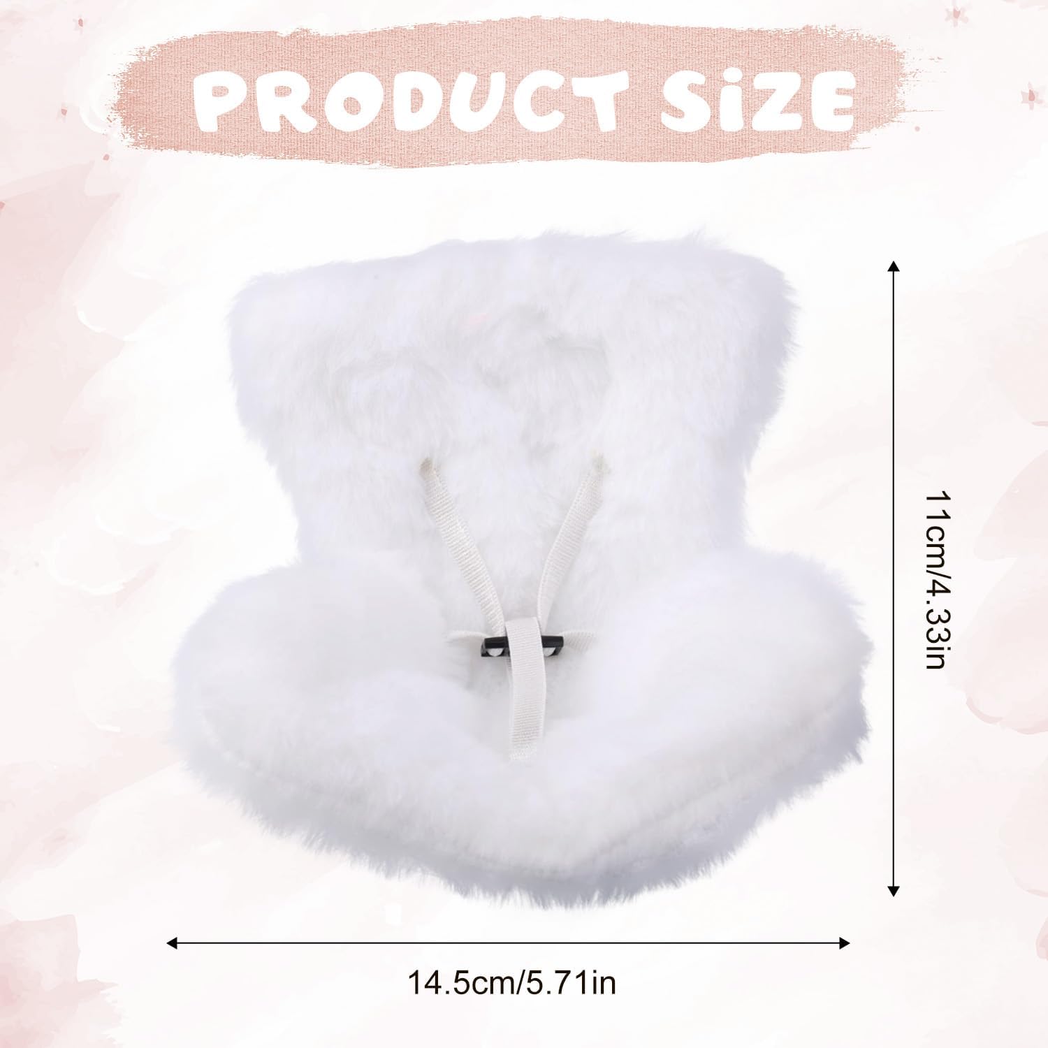 Specification: Color: white Material: plush fabric, plastic Product Size: 14.5x11x11cm/5.71x4.33x4.33 inches Package details: 1 x plush doll car seat 2 x air vent clips 1 x stopper Note: Due to manual measurement, the size and weight may have a certain error. Due to the difference between monitors, there may be a slight color difference.