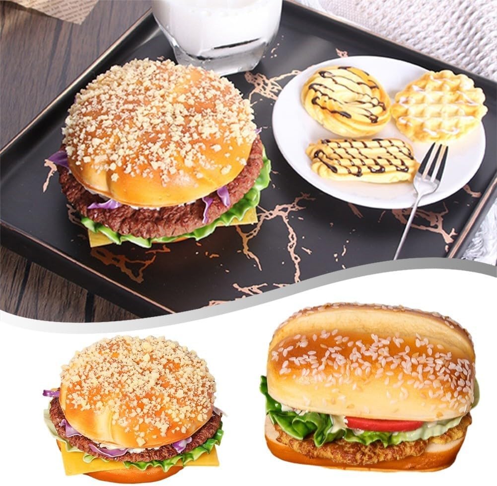 Product description Features:* You will get a high-quality simulated burger model!*This product is made of high-quality materials and high-quality manufacturing technology, which is sturdy and and has a very long service life!*Can also be used as shop decoration, such as bakery decoration, DIY craft shop, market stall decoration, etc.!*Can also be used as a children's toy to play role-playing games.*The simulated burger model is very realistic, but it is not food and is not meant to be eaten.*Features: Can be placed for display, can be used as a refrigerator magnet, dual-purposeSpecification:Product name: Simulated hamburger modelMaterial: PUColor: as shown in the pictureSize: 17*6.5*7.5cm (approximately)Package Contents:1x simulated burger model Manufacturer Contact Information no
