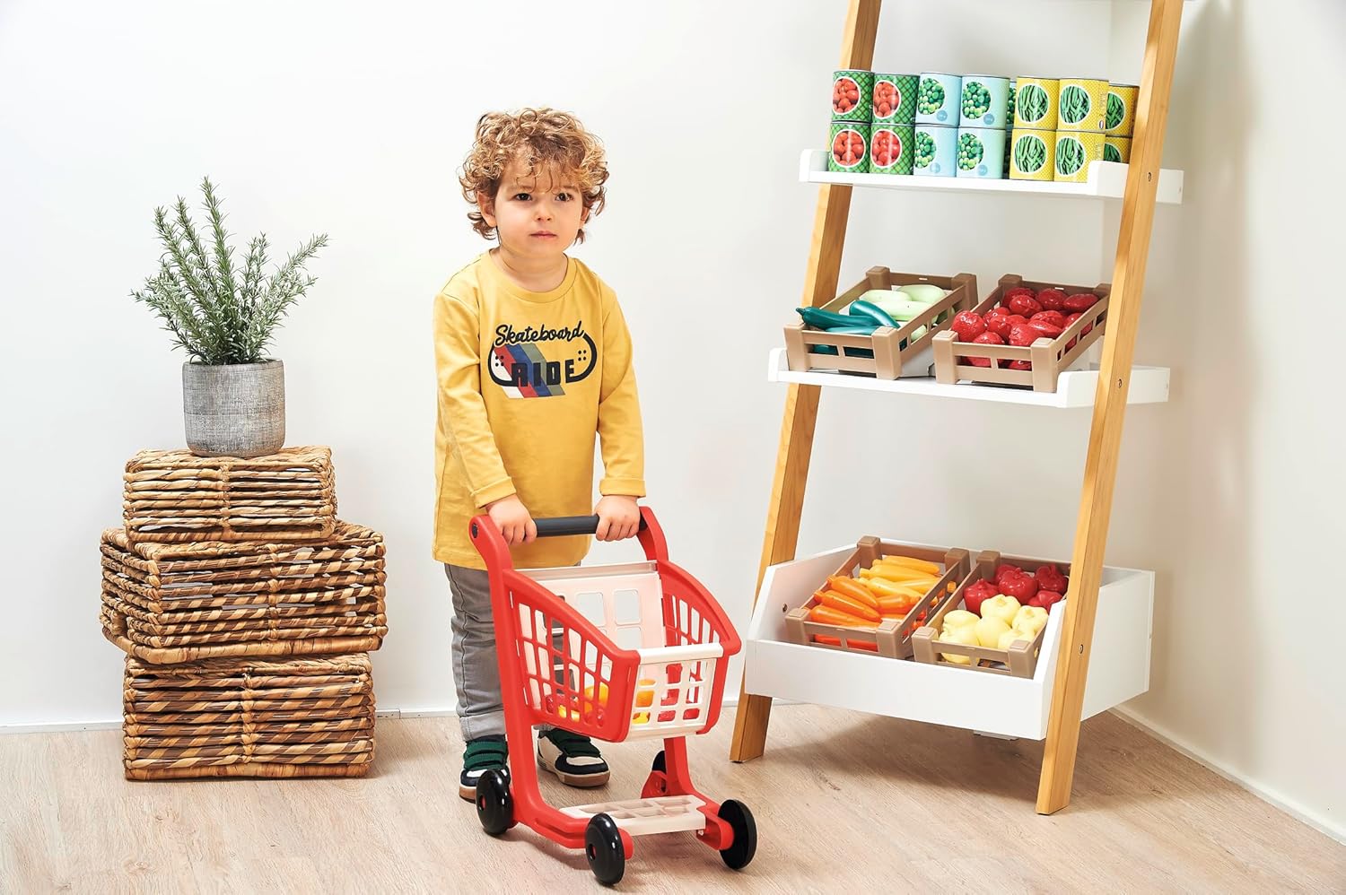 A supermarket cart and a mechanical cash register. It brings the realism and gameplay necessary for small players to imitate the adults who usually do the work of going to the supermarket. Loading the trolley with everything you need for everyday life. Then you can pay at the checkout. The set comes with a total of 44 pieces, including a drawer for coins and notes, barcode scanner, phone, soft keyboard, microphone, shopping cart and accessories.