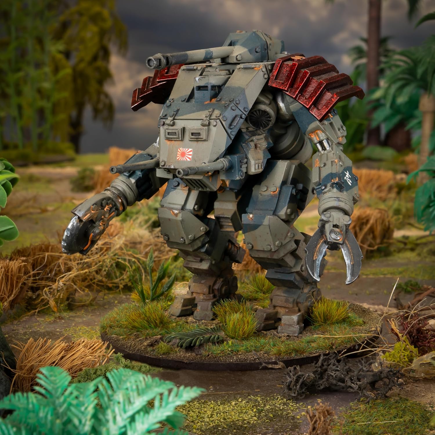 Warlord Games: Konflikt '47 - Japan: Inago Medium WalkerThe deployment of USMC Grizzly medium walkers to the Pacific posed a serious tactical problem for the Japanese. Developing a similar medium walker to counter it entirely from scratch would be too time-consuming. Again, the Imperial leadership turned to their (then) Axis allies who offered to export a limited number of the Pz.Kpfg. VII Heuschrecke stripped of its gravitic jump assist modules. On inspection of the first units to arrive in Japan the Imperial military discovered that the missing weight of the modules actually benefited the walker’s speed and agility, making it ideal for both general combat and reconnaissance duties. Recently, Japanese reverse-engineering of Axis-supplied components has allowed a fully Imperial-built version of the Locust, the ‘Inago’, to be produced in the Home islands. Contains one resin and metal miniature. Models supplied unassembled and unpainted