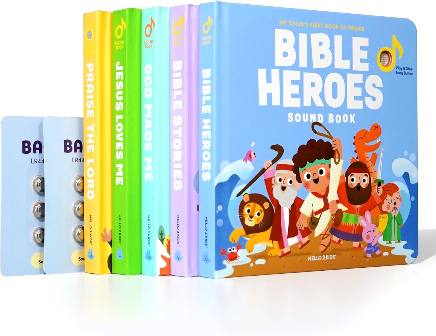 COMPLETE BIBLE STORYTIME SET: Three musical sound books introduce kids to Bible stories and Jesus’ love through engaging songs and art. Including a battery kit.