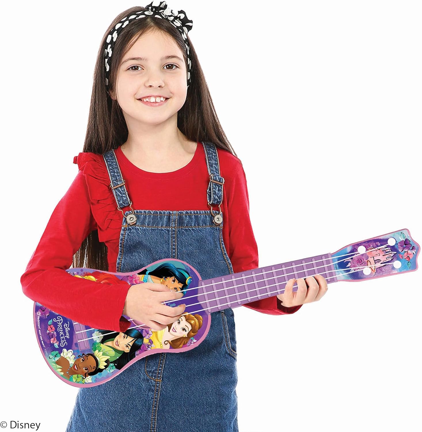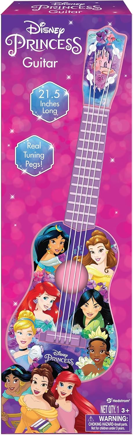 Turn up the fun with this officially licensed Disney Princess Large 21.5" Guitar—an ideal starter instrument for kids: It’s playful design make it perfect for introducing little ones to music. Designed for aspiring young guitarists, 4-string guitar features favorite characters to make learning enjoyable. It’s the perfect size for your little rockstar to play comfortably. This guitar supports the development of coordination, motor skills, and focus, all while keeping the experience fun. It’s a fantastic way to nurture creativity from a young age.