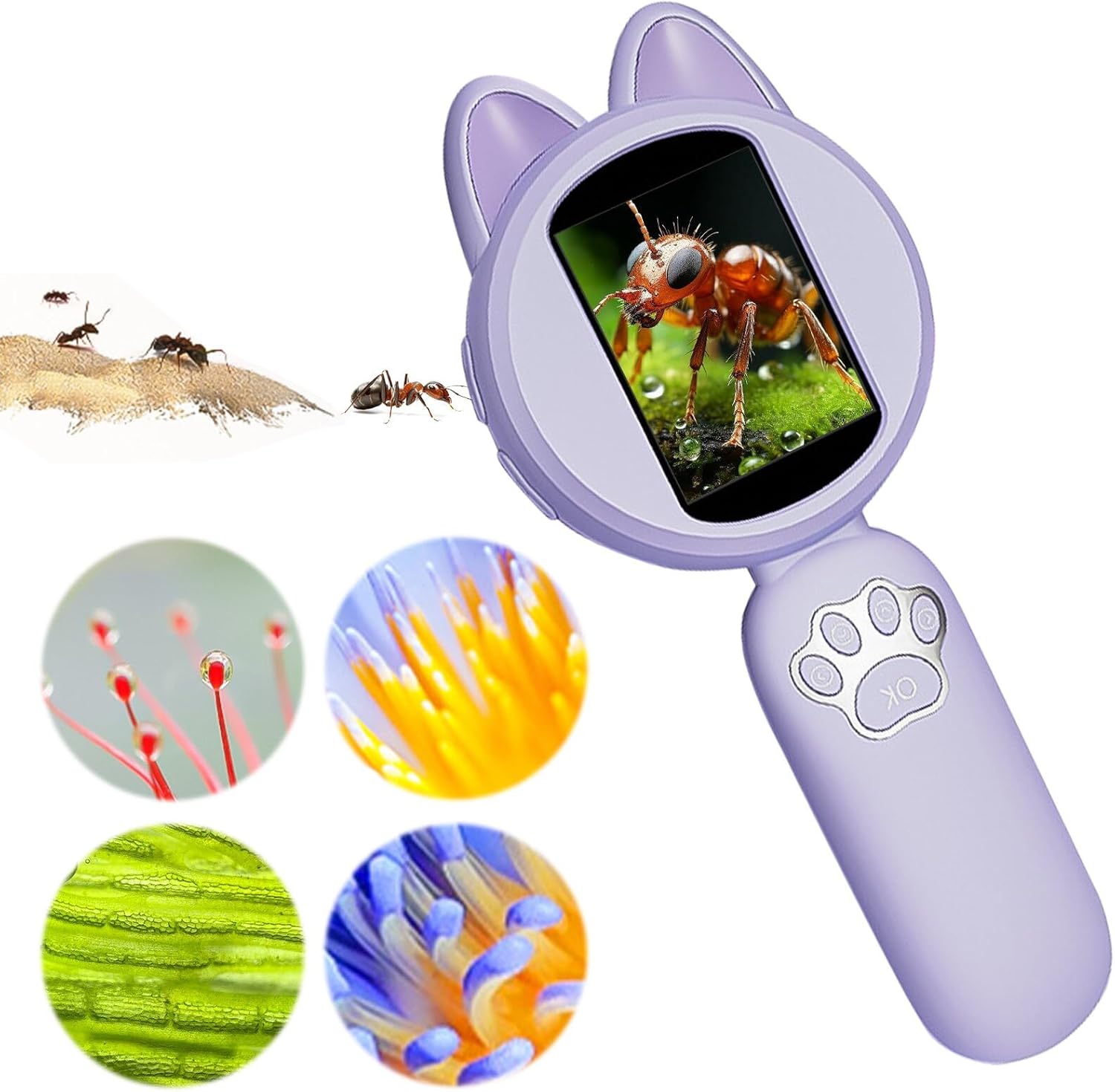 Microscope, Digital Microscope,Holding Magnifying Glasses,2’’ IPS Eye-Protecting Screen,4 Zoom Buttons,8 LED Lights,Built-in mini-Games.Christmas,Birthday,Edu Gifts.