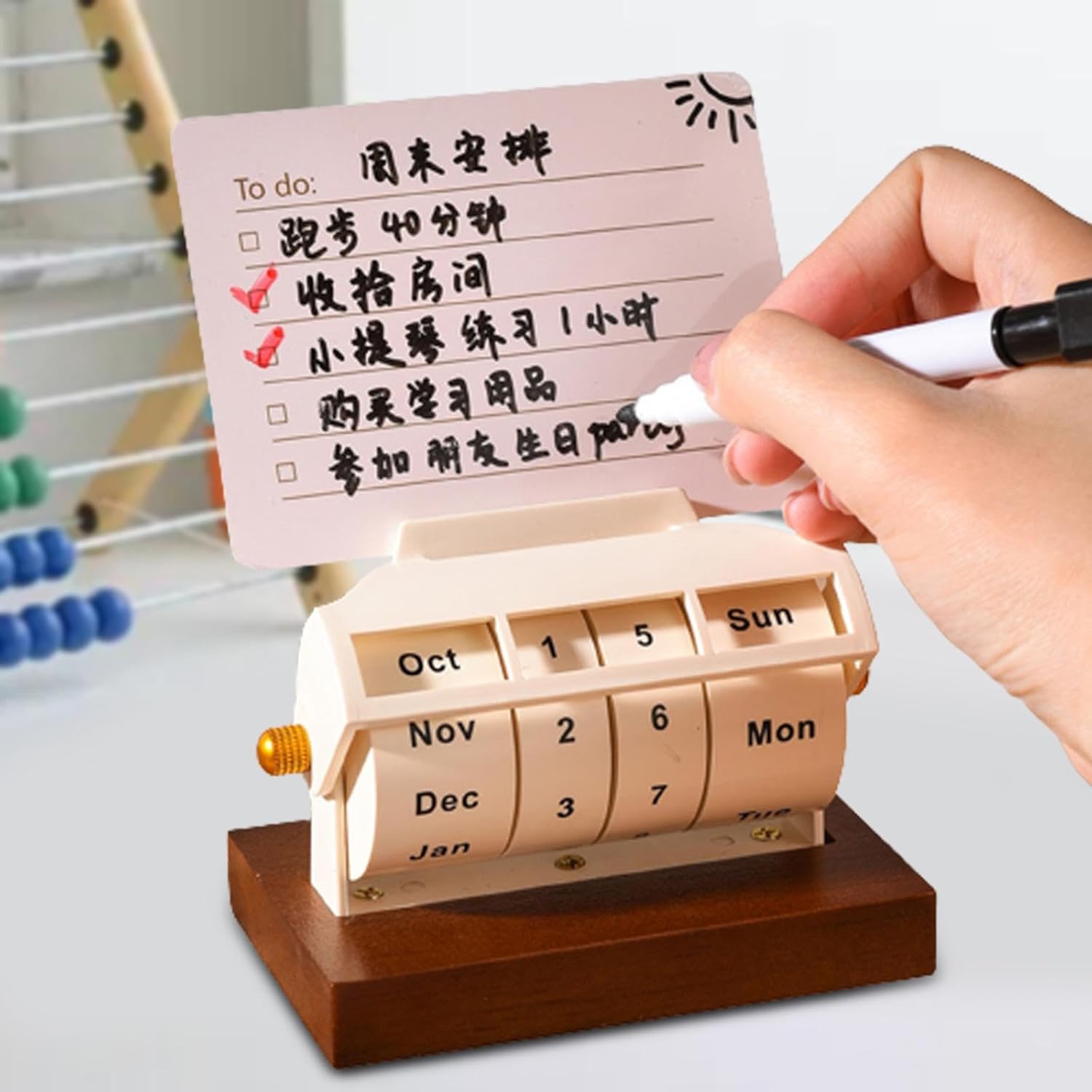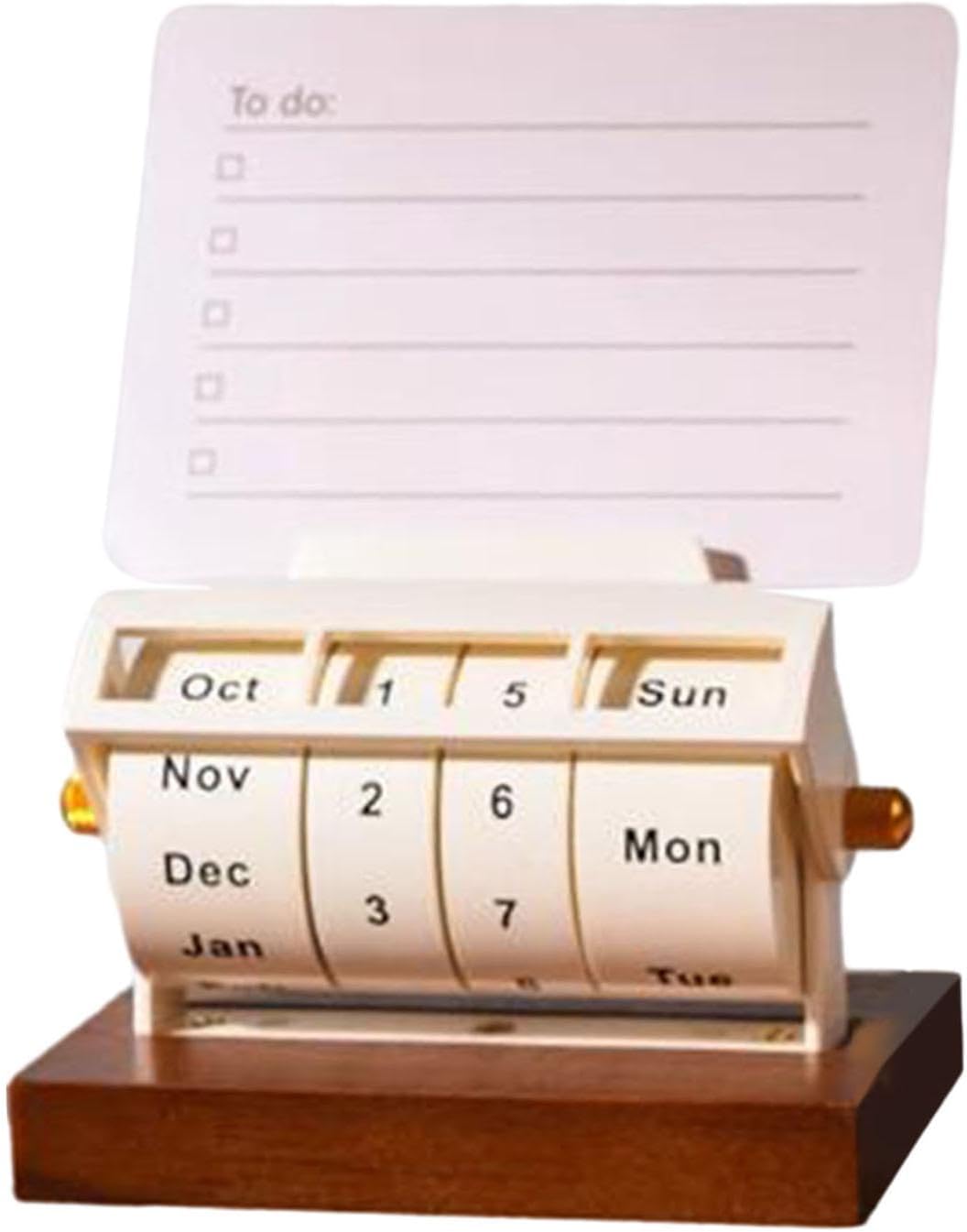 Description: - 【Material】The desktop rotating calendar is made of solid wood, durable and sturdy, can be used for a long time. - 【Stable】The thickened base design of the desktop calendar makes it more stable when placed on the desktop. The rotating calendar design makes it easy and quick to change every day. - 【Features】Rotating perpetual calendar is compact and easy to read, takes up little space, suitable for desks, countertops and more. - 【Easy to Use】The calendar can be easily changed to reflect the current date or holiday, just rotate the corresponding month and date. - 【DECORATIONS】Cute permanent desktop calendar is perfect for teacher desk decoration, school or classroom shelf decoration, office cubicle supplies, coffee shops and restaurants. Specifications: - Material: Wood Size Chart: 10.5cm x 6.5cm x 14cm/4.13" x 2.56" x 5.51" Package Includes: 1 x Desktop Wooden Rotating Calendar Note: Please allow a little error due to manual measurement and monitor.