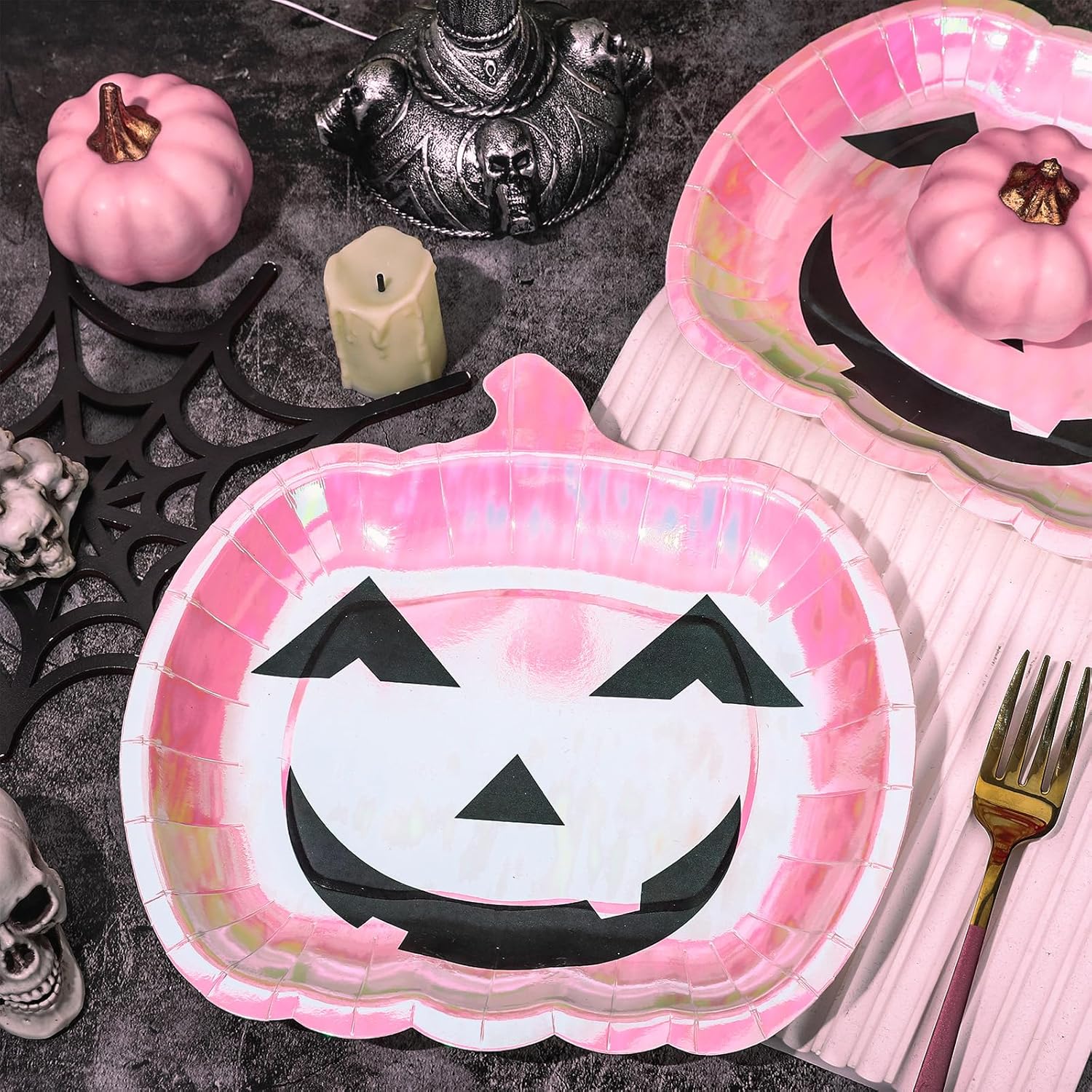 Features: Delicate Design: Our Halloween theme paper plates adopt pink foil holographic design with grimace pumpkin, funny and festive. Wide Applicable: These pumpkin paper plates not only practical for holding kinds of food, but also for decorations with a sense of design in various parties, especially for Halloween. Specifications: Material: Paper Size: Shown in the Picture Color: Pink Package includes: 40 x Halloween Paper Plates