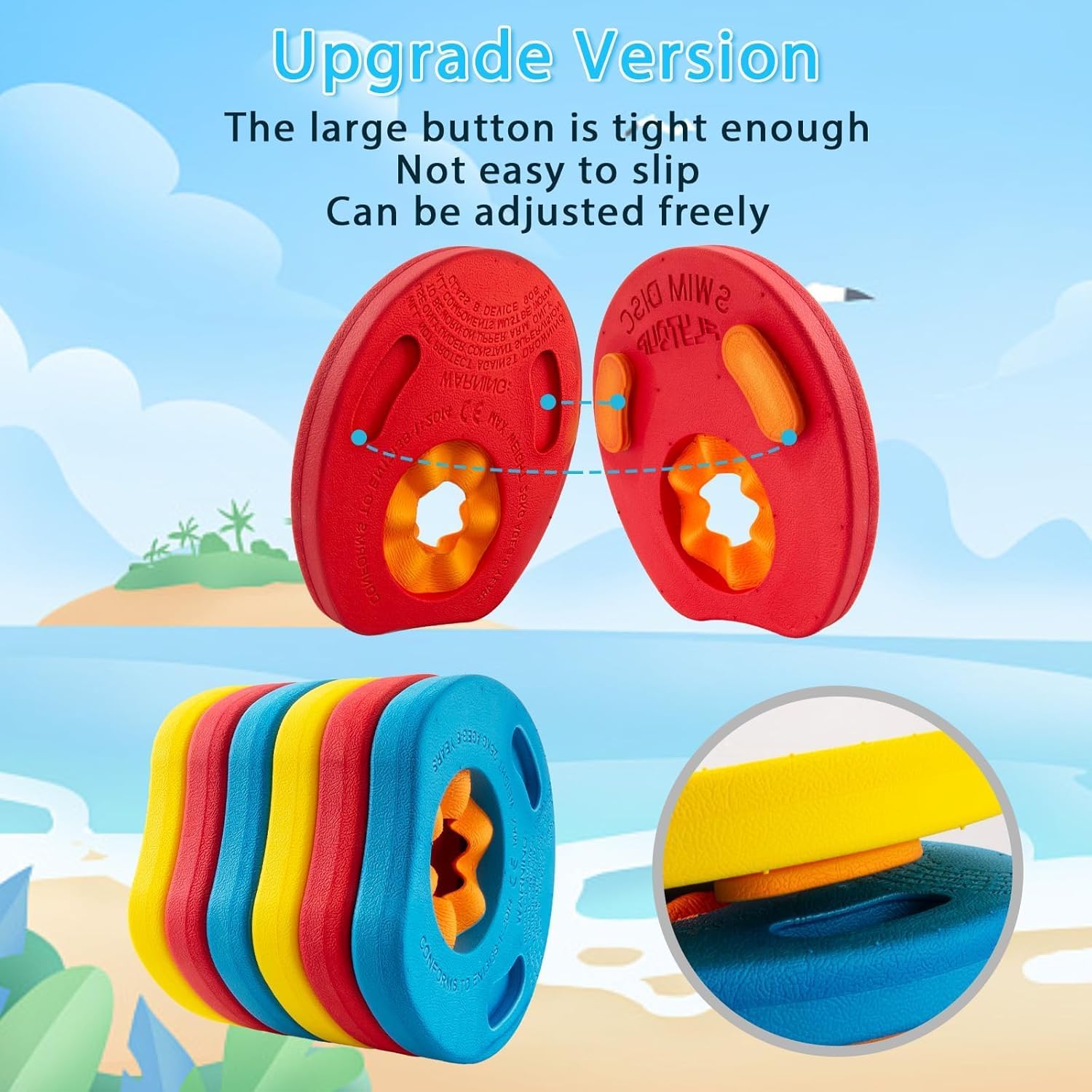 Características importantes del producto: Juego de 6 piezas con bolsa de almacenamiento: incluye 6 brazos de natación y una práctica bolsa de almacenamiento para facilitar su transporte y almacenamiento. Material: EVA de alta calidad: Hecho de espuma EVA ecológica de alta densidad que es antiadherente e impermeable. Más seguro, más confiable y más duradero que los productos inflables convencionales. Discos de espuma extraíbles: Los discos extraíbles permiten un uso gradual, pudiendo retirar un disco a la vez a medida que crece la confianza del niño. Ideal para enseñar a los principiantes a nadar con facilidad. ️Aviso de seguridad importante: Sólo apto para entrenamiento de natación infantil. Úselo siempre bajo supervisión de un adulto. No permita que los niños naden sin supervisión.