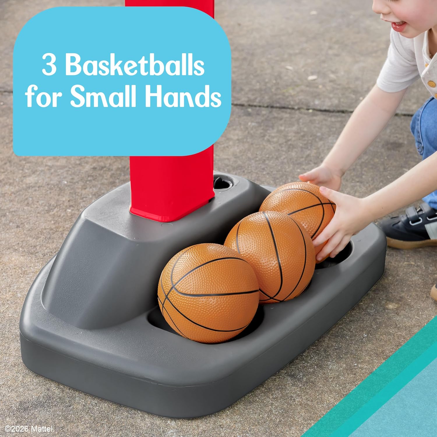From first shots to mini slam dunks, the Fisher-Price™ Grow to Pro Basketball Set makes playtime fun and helps kids build coordination and confidence. Designed to grow with your little one, this adjustable hoop encourages active play and skill development while keeping children engaged indoors or outdoors. The set comes complete with three balls, a hoop with net, backboard, adjustable pole, stand, and a water-fillable base for stability. With easy assembly and multiple height settings, parents can feel confident that playtime is perfect for growing skills over time. Whether it’s a sunny backyard game or a rainy afternoon indoors, this set delivers hours of engaging, active play for kids 18 months and up.