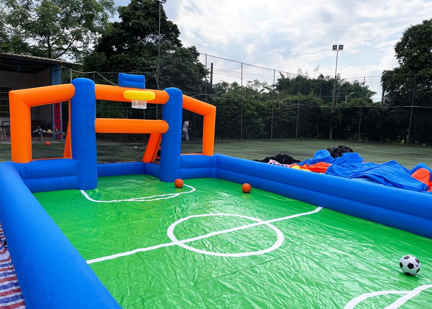 | Included Components | air blower, basketball, nails+ropes, soccer |