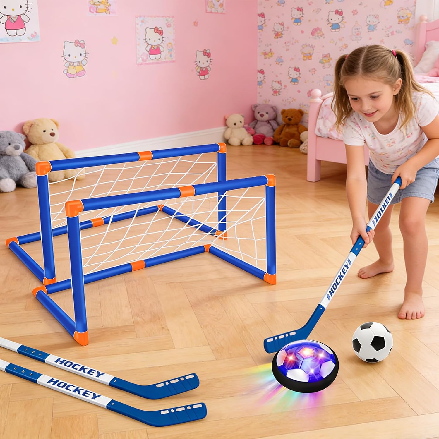 USB Rechargeable LED Floating Football And Hockey Set With 2 Targets For Indoor Sports Activities Features: Complete Floating Soccer and Hockey Set: This all inclusive package features a rechargeable soccer ball, floating hockey disc, 2 goal posts, 2 hockey sticks and a charging cable Enjoy various game preferences including soccer, hockey or compact sports for indoor fun with this versatile sports combination Advanced Air Floatation Technology: Built with powerful fan mechanisms allowing smooth movement on hard floors, wooden surfaces or carpeted areas Perfect for safe and exciting indoor entertainment regardless of weather conditions or limited outdoor space Bright LED Lighting Effects: Both spheres feature glowing LED lights that activate during gameplay, creating visual excitement especially in dim environments Great for evening activities or gaming in darker rooms with better Safe Indoor Entertainment Construction: Made with permanent ABS materials and padded foam edges to protect furniture and surfaces while ensuring secure play Designed for aged 3 12 to improve coordination, collaboration and physical activity Perfect Active Entertainment Gift: Excellent for both indoor and backyard fun, suitable for, girls and pets Makes an ideal birthday, Christmas or holiday present that encourages interactive group activities and lively recreation Specifications: Product Type: Three-in Football Sports Package dimensions: 13.66 x 8.27 x 4.21 inches Item weight: 1.98 Product substance: ABS Product color: multi-color Package Includes: Trilateral football sports suitx1 Note: Before using the accessory, please check it is compatible Pay attention to the storage methods
