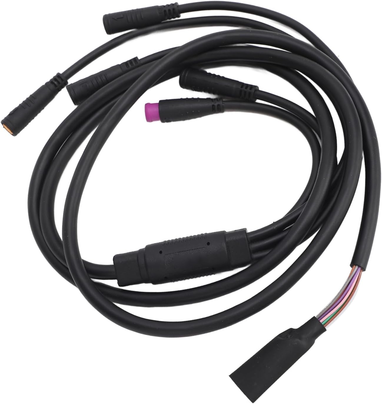 [Waterproof weather resistant] Designed with specialized waterproof connectors, this electrical harness provides complete protection from rain moisture and harsh weather conditions.Sealed connections prevent corrosion and short circuits, ensuring uninterrupted performance no matter where you ride with your electric scooter. [Compact yet high-performance] Despite its space-saving design, this wiring harness offers full power transmission without compromising .Lightweight 4 oz construction makes it easy to handle and storage while maintaining excellent chain carrying ability for smooth scooter operation at all speeds.Universal design works with most electric scooters and standard bikes for versatile repair solutions. [Easy Installation Replacement] Designed for hassle-free setup, this integrated wiring harness features color-coded connectors and plug and play functionality. It perfectly replaces old or damaged harnesses with no need of technical knowledge, making quick and direct maintenance and upgrades. [Durable copper construction] Manufactured with premium copper core wires, this sturdy electric scooter wiring harness offers exceptional conductivity and lasting durability.The reinforced design withstands frequent use while maintaining optimal electrical performance for years of reliable service on your electric scooter or bike.110g / 3.9oz Integrated Wiring Harness Function Description: Left and Right Brake Lever: 2 x Red Female Head 2 Pin Throttle: Yellow Female Head 3 Pins Panel: Purple Head 7 Pin Integrated Switch: Green Female Head 5 Pin Package List: 1 x Electric ScooterWaterproof Cable 1T5 3 x Terminal Connectors