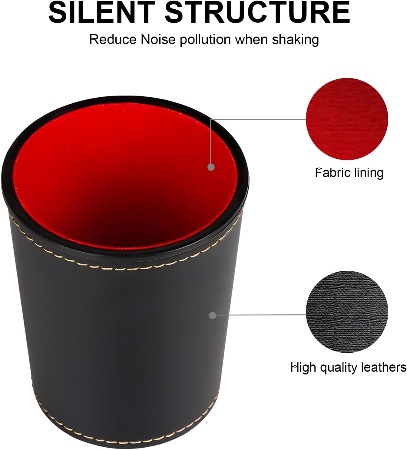 Bar Dice Shake Container Professional Tableboard Game Dice Cup PU Leather Stable Comfortable Touch Features: Brand New Our cups feature high quality construction and fashion design, ensuring long lasting use for almost every game needs Improve your gaming experience with our dice cups for smooth and enjoyable gameplay From family gatherings to parties, our cups will bring excitement to any gaming event or entertainment environment. Noise reducing PU leather cups, enjoy a quieter gaming experience. Increases comfort during play. Suitable for board game enthusiasts, role-playing game enthusiasts and social gatherings, this multifunctional cup accommodates a wide range of players. Specifications: Material: Leather, Plastic Color: As picture show Package weight: about 150.0g Bottom diameter: about .6cm/2.36in Height: about .9cm/3.54in Package Includes: 1 dice cup Note: Due to manual measurement, please kindly allow 1-2cm discrepancy. Please do not mind before bidding. Due to the difference between different monitors, the picture may not reflect the actual color of the item. Thank you!