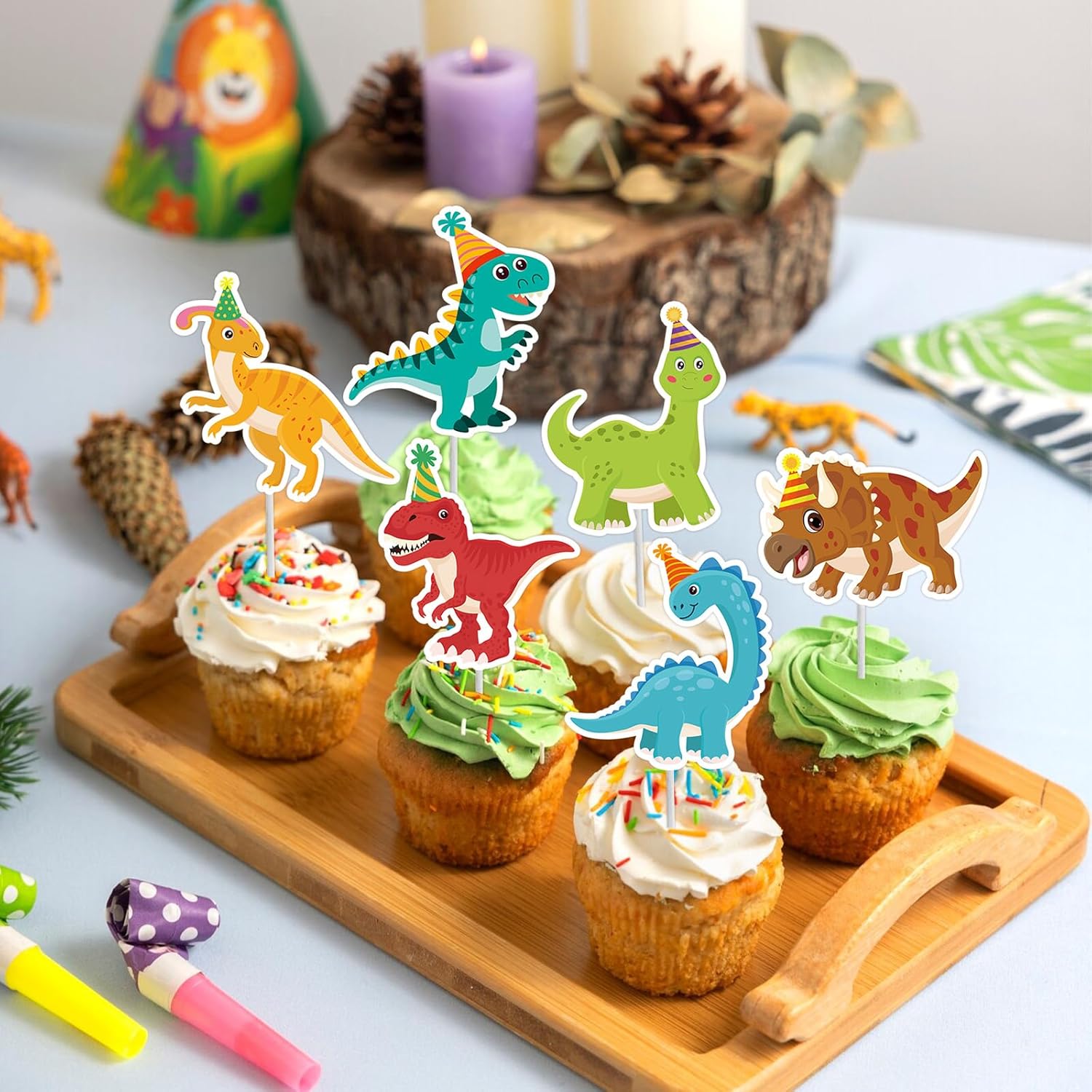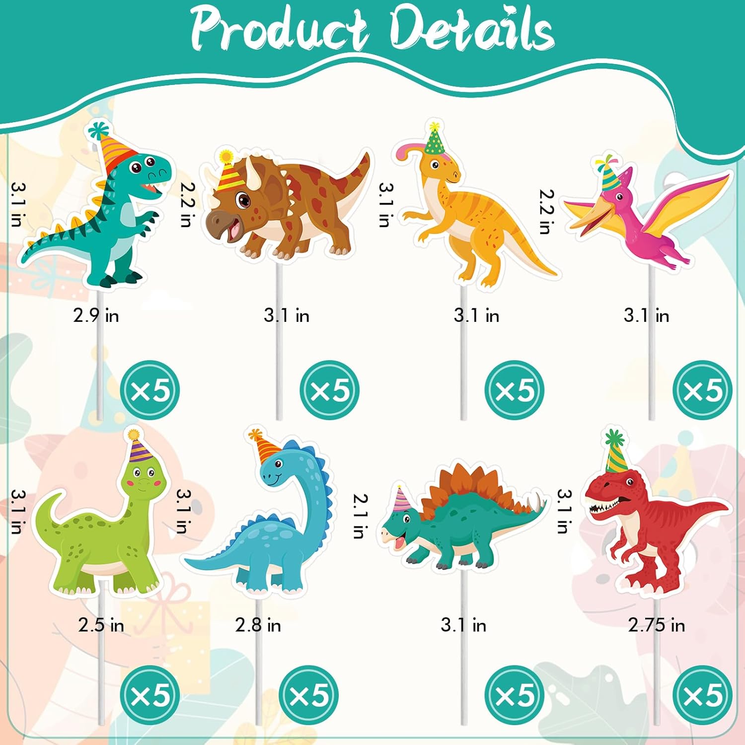 40 Dinosaur Cupcake Topper, Cute Tyrannosaurus Rex Stegosaurus Pterosaurus Triceratops Cupcake Picks Dino Cupcake Toppers Dinosaur Cake Topper for Dinosaur Party Decorations Features 40 Pcs dinosaur cupcake toppers with 8 different style, each style 5pcs offering an abundance of options for decorating at your dinosaur party. These dinosaur party cake decorations will make your cupcakes more attractive and bring endless fun to your party. Dinosaur cupcake picks are all pre-assembled, no DIY required, and then insert them into the cake. and then insert them into the cake, you will have a wonderful time. These dinosaur cake decorations can be used for dinosaur themed party, jurassic world theme party, kids birthday party, baby shower theme party and other themed party, creating a festive and spirited atmosphere to you. Package Include 40 x Dinosaur Cupcake Toppers