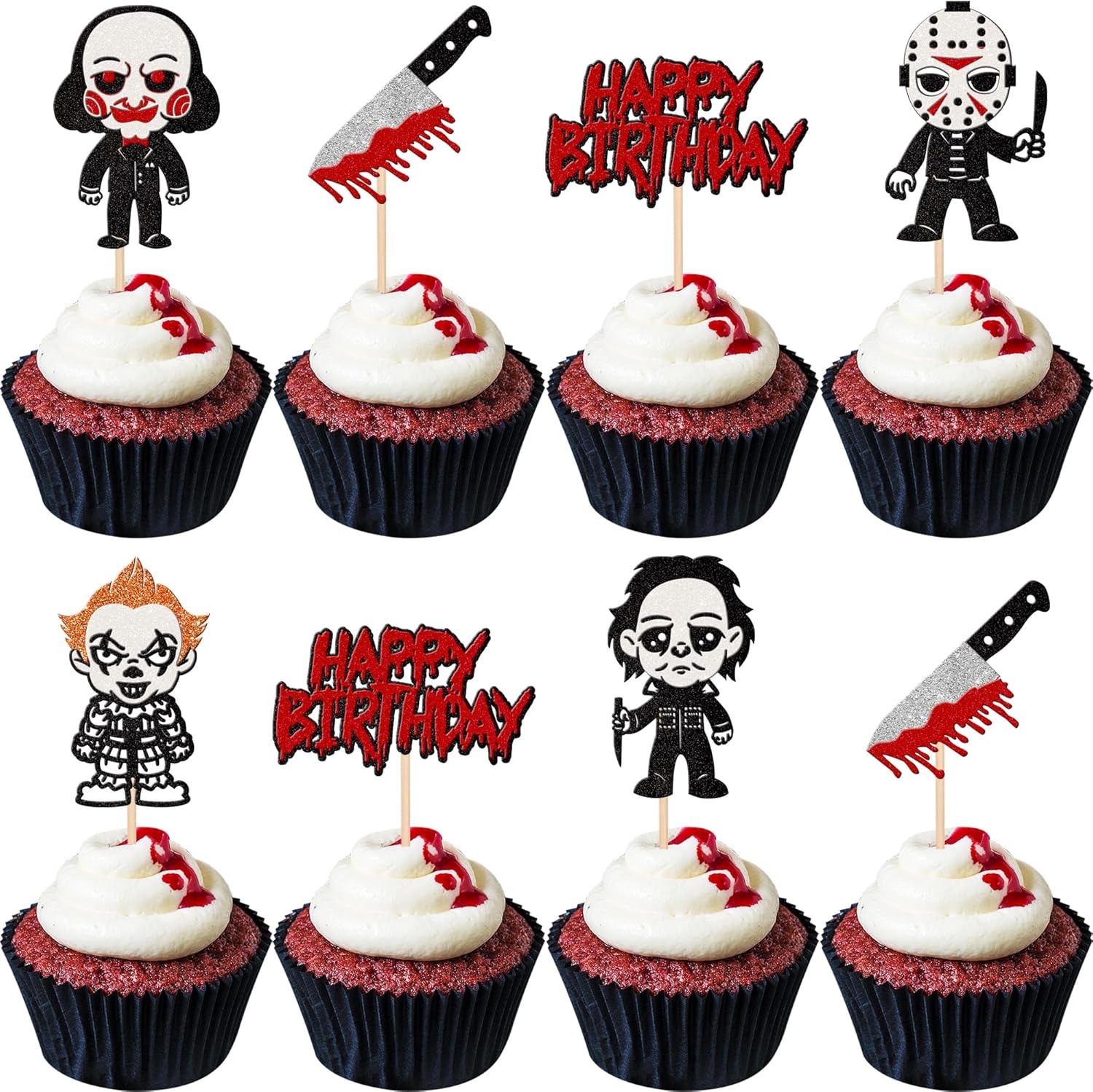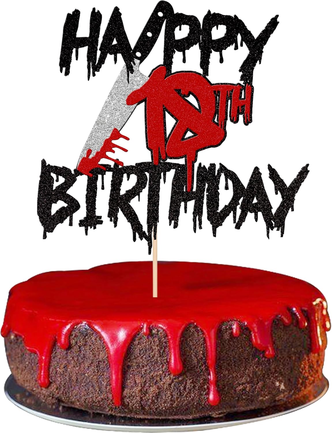 1 PCS Have a Killer Birthday Cake Topper Assembled Glitter Horror Classic Halloween Cake Pick for Bloody Horror Movie Theme Birthday Halloween Party Cake Decorations Supplies Perfect for have a killer birthday theme party, horror movie theme party, halloween theme party cake decorations supplies. Pack of 1 pcs,1 pcs / card +opp bag The size is W 6.1 inch * H 8.7 inch / W 15.4 cm * H 22 cm ( with stick ) Made of high quality glitter paper card stock and food grade sticks, thick and sturdy. The cake topper is single glitter, the back is white, and they are intended for decoration only, please do not put them in oven or microwave. If the item you received has any defects, please contact us immediately, we will deal with it within 24 hours until you are satisfied.