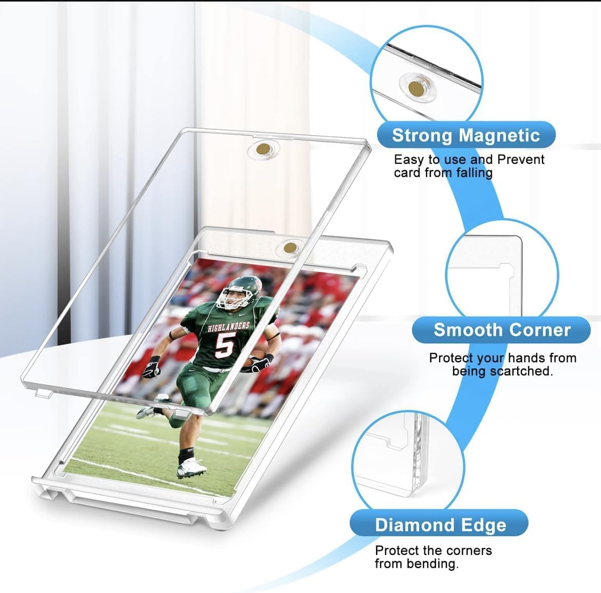 Protect Your Prized Cards Like a Pro! The Ultimate 35pt One-Touch Magnetic Card Holder is designed for serious collectors, gamers, and traders who demand maximum protection and premium presentation for their valuable cards. Made from crystal-clear, UV-resistant hard plastic, this holder shields your cards from dust, scratches, moisture, and harmful sunlight, ensuring they stay in mint condition for years. Why Choose Our Card Holder? ✔ Secure Magnetic Closure – Keeps cards firmly in place while allowing easy access. ✔ 35pt Thickness – Fits standard sports cards, MTG, Yu-Gi-Oh!, and more. ✔ Ultra-Durable Hard Plastic – Resists bending, warping, and yellowing over time. ✔ Crystal-Clear Display – Showcase your cards without glare or distortion. Perfect for graded cards, autographed memorabilia, rare collectibles, and competitive gaming, this holder is a must-have for any card enthusiast. Upgrade your storage today!