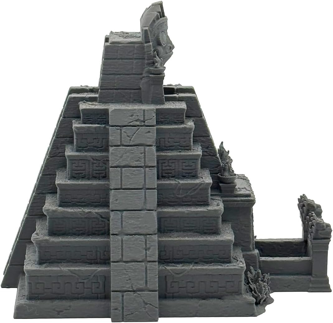 Bring your pen & paper adventures to life with this atmospheric cube tower. The design of an old, mysterious temple is not only an epic eye-catcher on any gaming table, but a functional addition to any game round. No more discussions about tipped dice or throws rolling off the table. Thanks to its inner structure, this tower guarantees a real random result with every throw. Throw your destiny cubes into the top of the temple opening and watch them roll out of the old wall below and decide on success or failure. MAXIMUM COMPATIBILITY FOR YOUR DICE COLLECTION The passage is generously designed so that it fits all standard cubes, of course also the classic 20 sided cube (D20) without clogging. Quality from Germany: This cube tower is made using advanced 3D printing technology. We use high-quality PLA+ (polylactide), a biocompatible plastic derived from renewable raw materials. This ensures high stability and durability while maintaining environmental compatibility. The ideal gift: Whether for Dungeons and Dragons (DnD), The Black Eye (DSA), Pathfinder or other tabletop systems, this accessory is the perfect gift idea for game masters and players who value atmosphere and order at the table. Perfect for hobby artists: the material offers the ideal surface for your own designs thanks to its texture. The tower can be painted perfectly with standard acrylic paints to further highlight the architectural details and stone embellishments. IMPORTANT NOTE ON THE DELIVERY CONDITION: This item comes unpainted in a uniform dark grey as standard. The pictures serve as a design example. The material provides an excellent primer if you want to paint the tower yourself, but it also looks classy and fitting in its original condition.