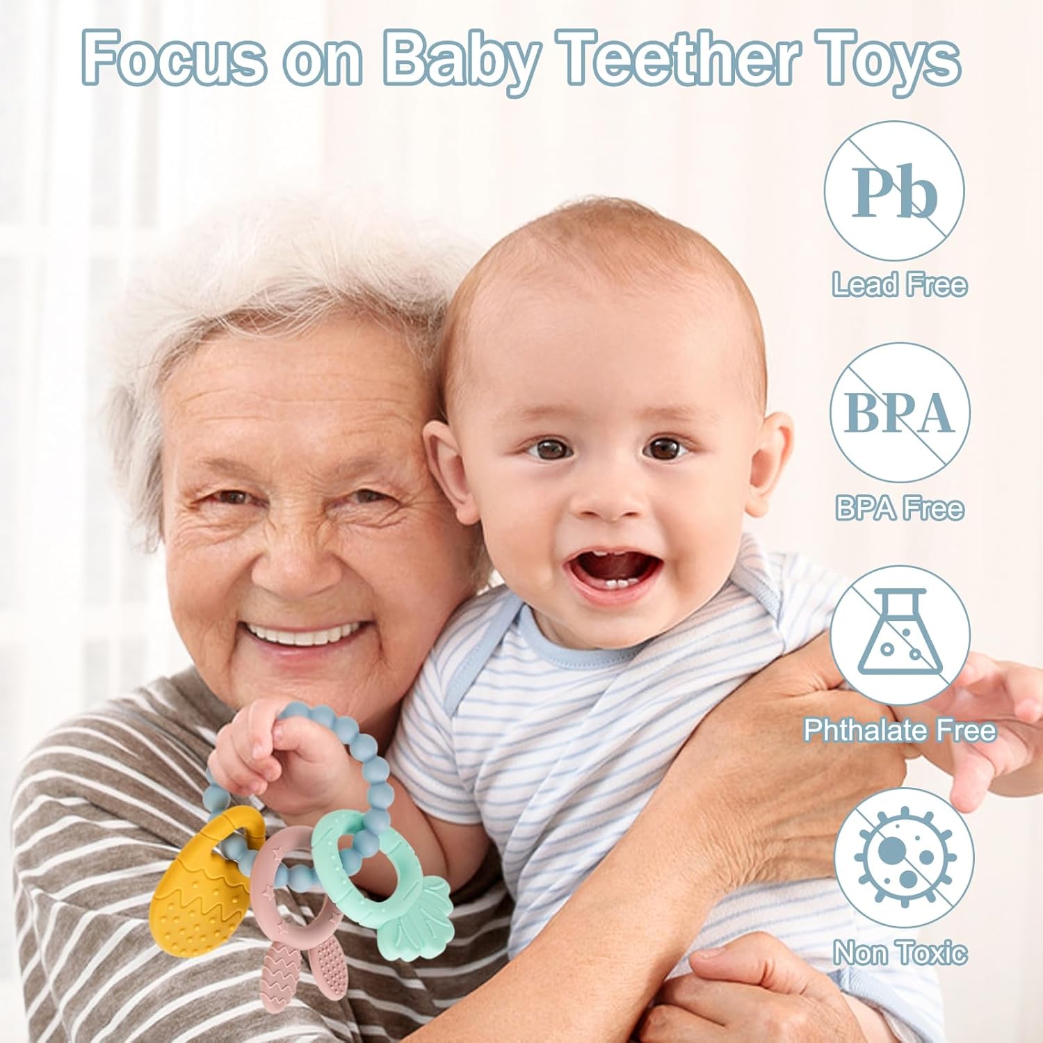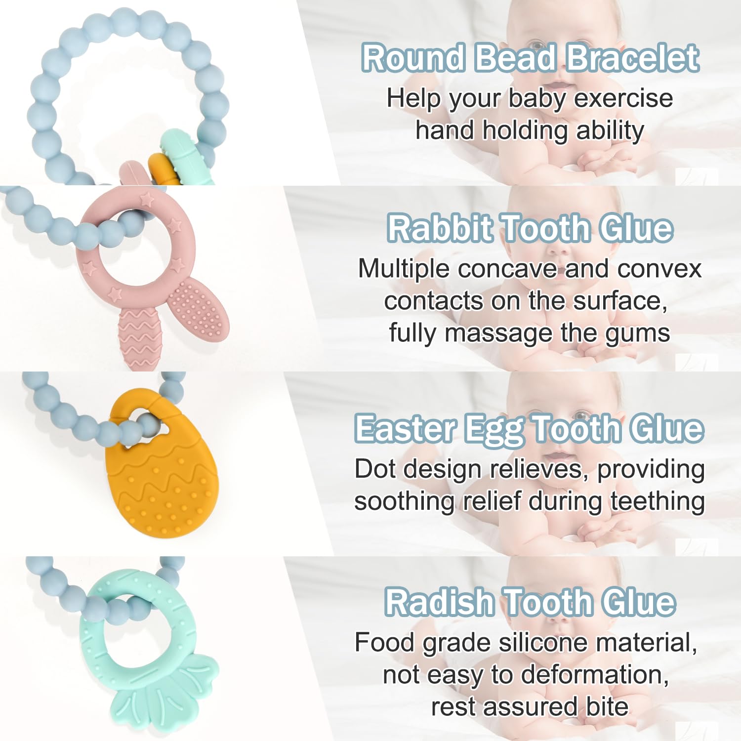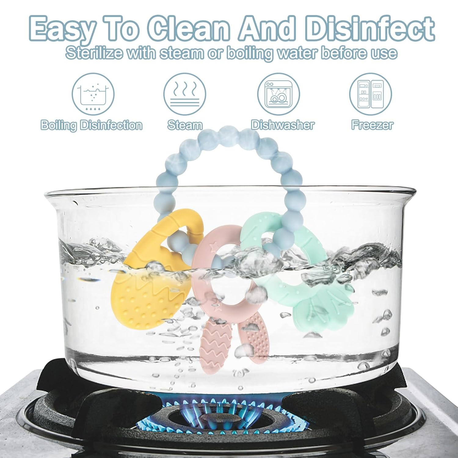 SAFETY IS OUR HIGHEST PRIORITY! 100% Food Grade Silicone Beads. BPA Free, Free of Phthalates, Cadmium, Lead, PVC, or Metal. Integrated molding, no blind angle, no parts, clean easily with soap and water, boil it in water for 2~3 minites, or put it into dishwasher. CLEANING TIPS Hand wash. Clean with soapy water or wipe with a wet cloth Air dry before storage.