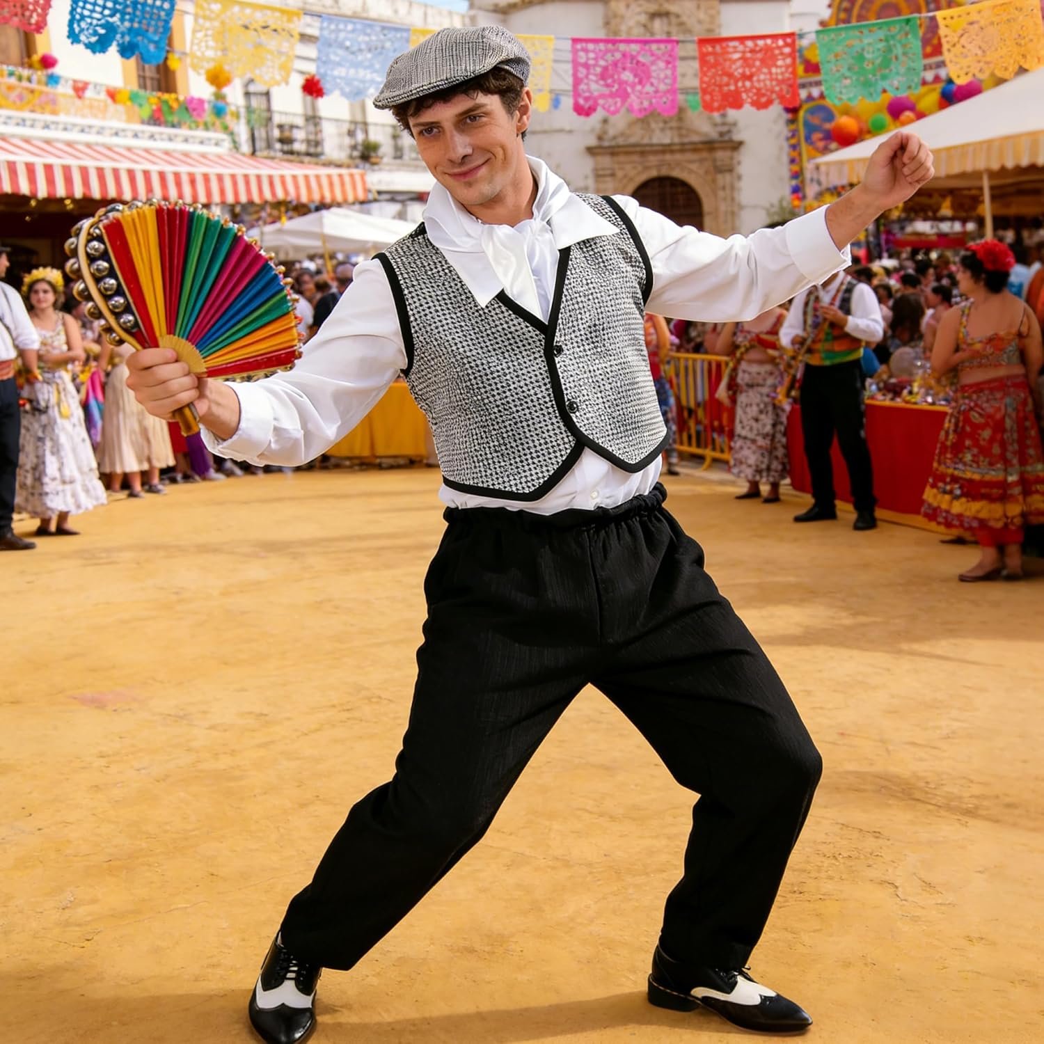 This Wildarms chulapo costume for men is inspired by the traditional Madrid style worn during the famous Fiesta de San Isidro in Madrid. The vest features a classic design representing Spanish popular culture and is perfect for cultural celebrations, carnival, theme parties or performances. The vest is light and comfortable, easy to combine with other elements such as white shirt, dark trousers or cap to create an authentic Madrid chulapo look. This product is available in sizes S, M, L, XL and 2XL, suitable for adults who want to participate in Spanish parties or cultural events.