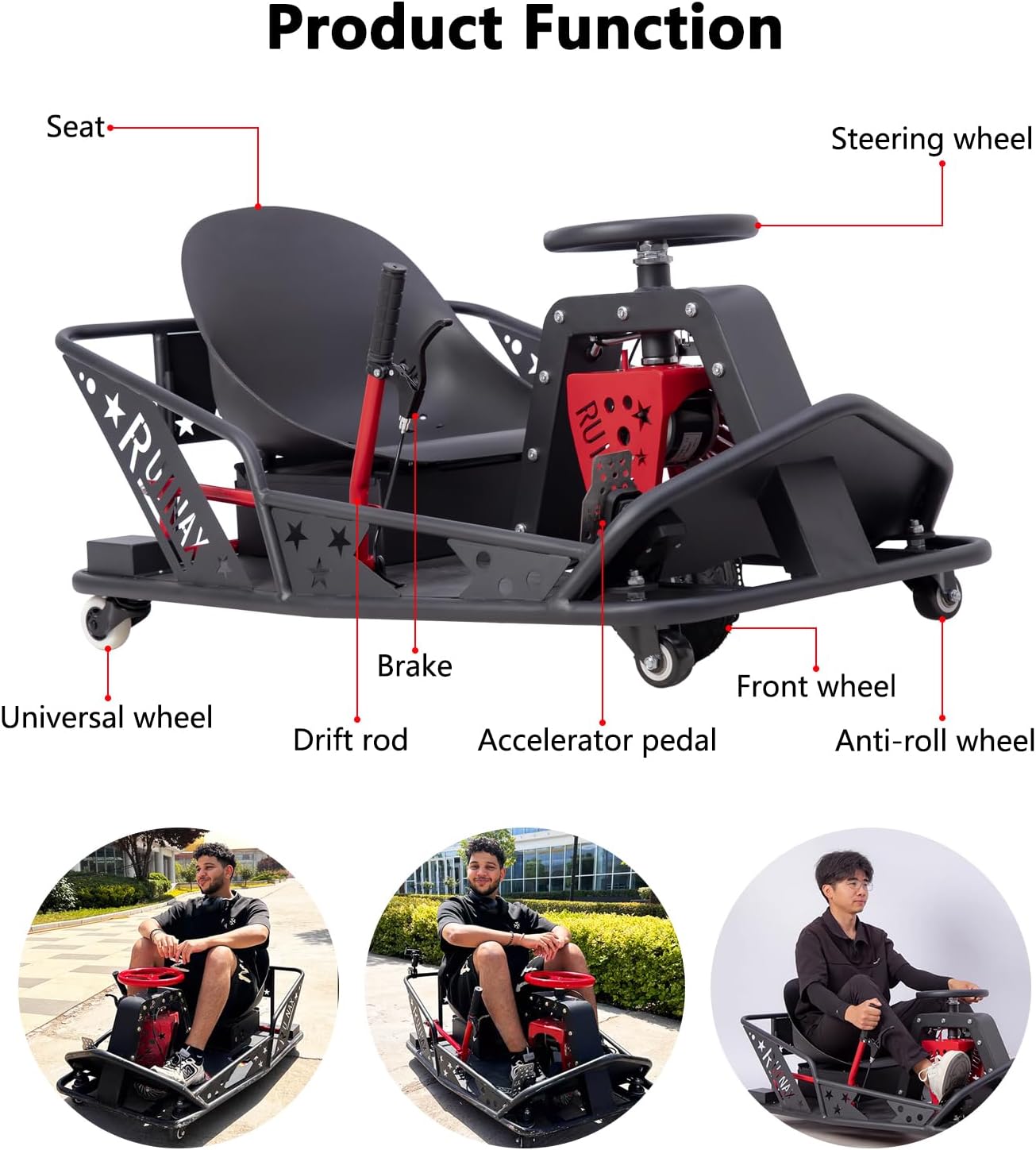 36V Electrict Drift Kart for Adults, Carts Shift Up to 12 mph and Up to 40 Minutes of Continuous Use, Drifting Go Karts Speeds with 360°Rotate for Indoor Outdoor