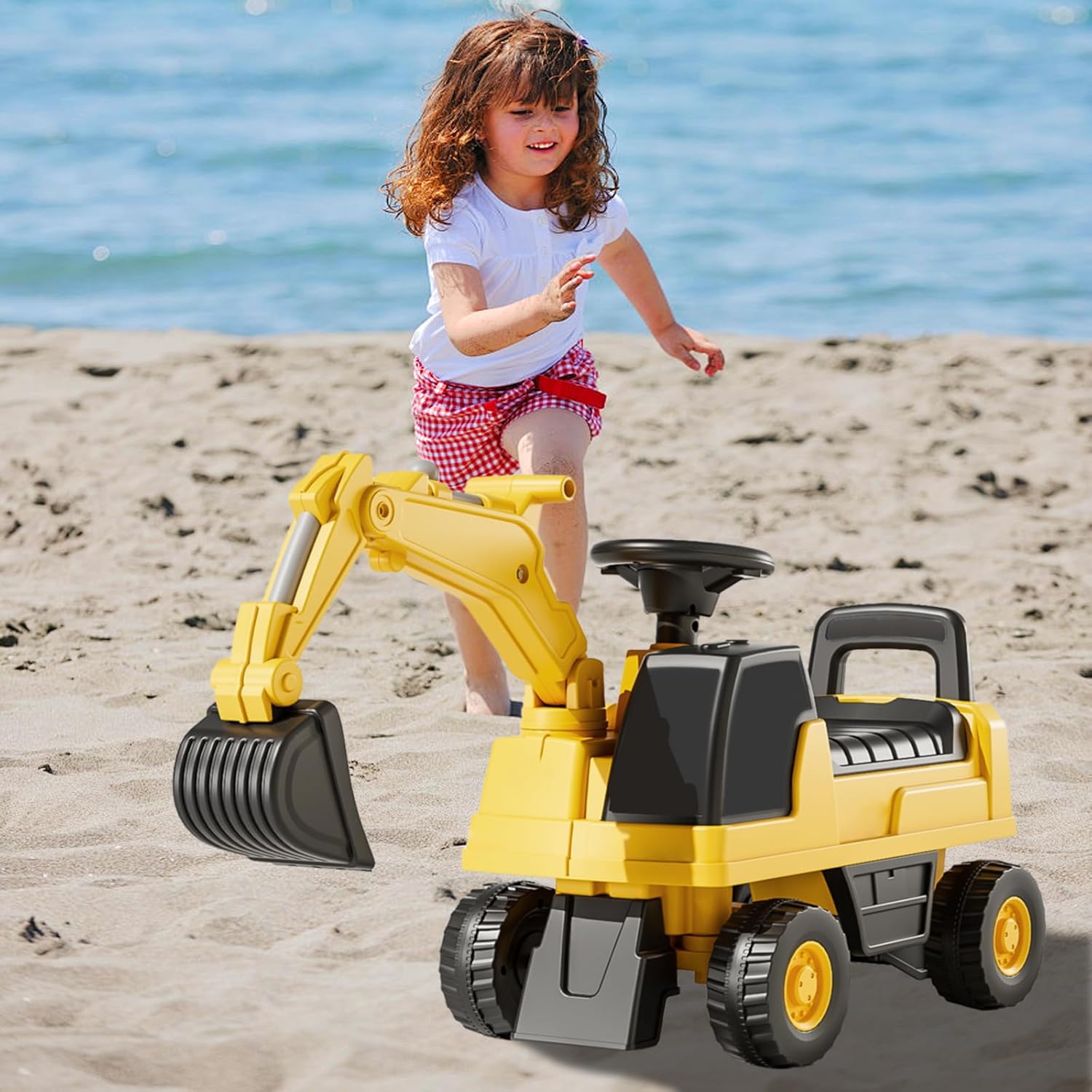 Product Specifications Package size: 53*36*35cm Gross weight: 4.5 kg Material: Plastic Product Features Dreams take to sea, a good partner for engineering vehicles: realize your baby's engineering dream and let him win on the starting line Cool shape, all day fun: multiple controllable joints, double fun, large size Simulation digging arms, experience unlimited fun: powerful digging arm, experience realism Look for quality and let your baby ride happy: off-road wheels, stable structure, movable joints and super load-bearing capacity Flexible digging arm allows you to discover the fun of digging at home: improve the gaming experience and exercise your hands-on skills Anti-tipping design gives baby a sense of security: Anti-tipping limit design prevents baby from tipping over Steering limited to 15 degrees Slow turn to prevent flipping - avoids oversteer, loss of control and falling Non-slip and wear-resistant wheels for stable grip and driving on different road surfaces Suitable for all types of roads: stone brick, steps, grass, sand, cobblestone, marble Widen the backrest to protect the baby's spine: widen the seat and enlarge the backrest so that the baby does not feel tired when sitting for a long time Foldable seat cushion: small space for baby toys