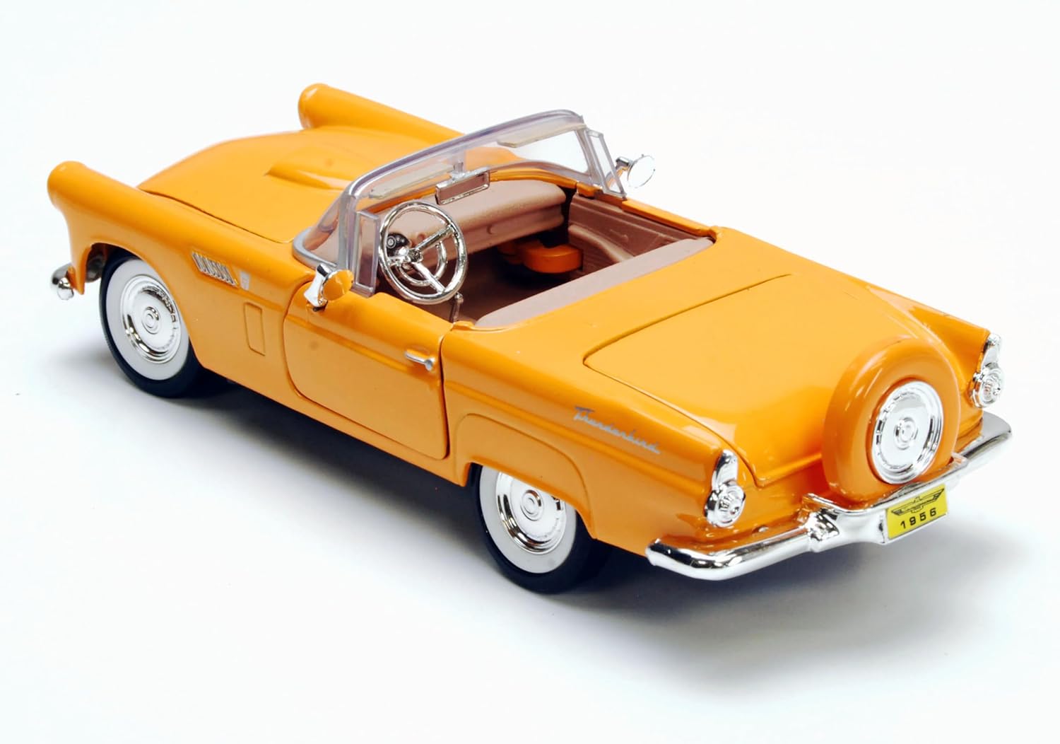 Make your own movies with this cool luxury sports car from Showcasts! This 1956 Ford Thunderbird Convertible is a 1/24 scale model replica. It comes in yellow and features openable doors, hood, trunk, steerable front wheels. It's an excellent item for any luxury sports car collection, and a must-have for faithful Ford fanatics!