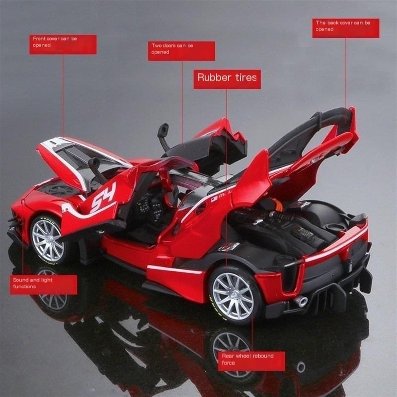- Place of Origin: Dongguan, Guangdong- Material: Alloy- Car model scale: 1:32- Function: flash- Product Category: Car Model- Specifications: Display box for single vehicle- Control method: inertia- Packaging: color box- 3C Configuration Category: Over 15 years old- Color: Sound and light car red (secret box)- Whether to provide exclusive supply for cross-border exports: No- Applicable age: Youth (15-35 years old)- Unit weight: 0.358kg- Product volume: 16.9cm * 9.5cm * 6.9cm