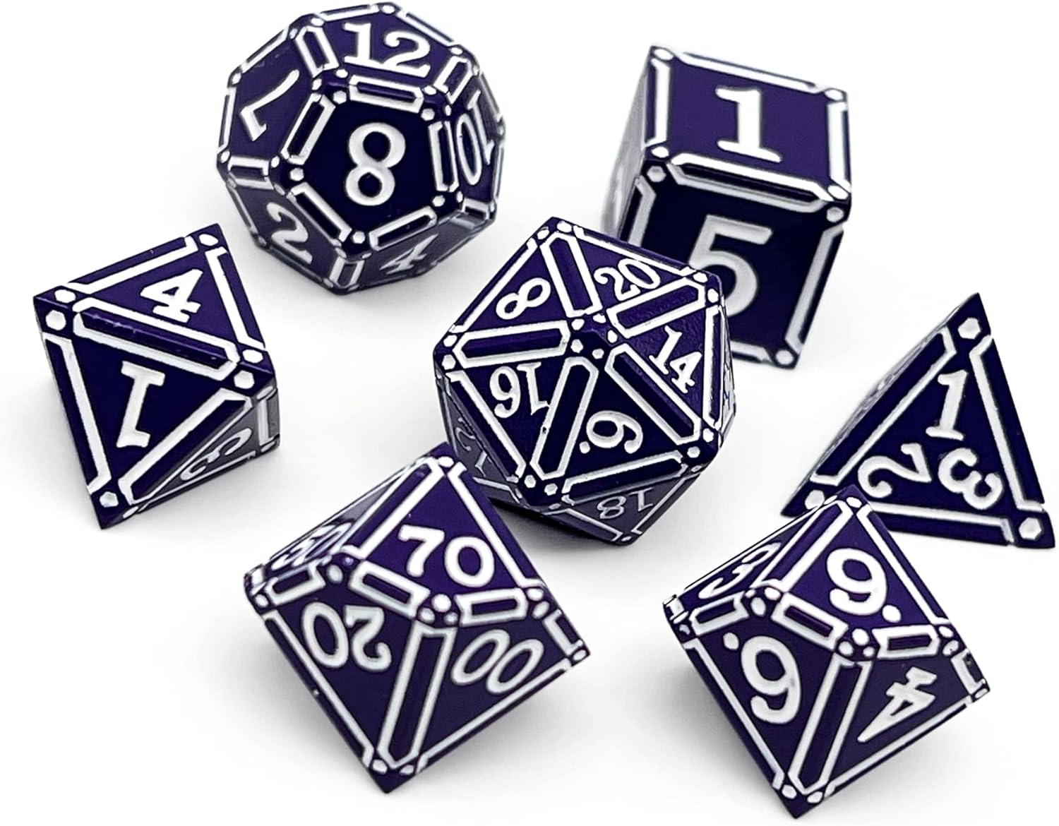 Start on a journey through realms unknown with our exquisite 7-Piece Metal Dice Set, meticulously crafted to raise your gaming experience to new heights. Crafted from solid metal alloy, these dice are not just tools of chance but companions through the labyrinth of your imagination. Within this set, you'll find everything needed for your next adventure: a d20 dice for pivotal moments of fate, a d12 for critical strikes, dual d10 dice for percentage rolls, a d8 for weapon damage, a d6 for spellcasting, and a d4 for minor wounds or treasure division. Whether you're delving into the depths of dungeons or soaring through the skies on fantastical quests, these dice stand ready to aid you in your endeavors. Each piece boasts intricate designs, reflecting the essence of ancient artifacts discovered in long-forgotten tombs. The numbers, etched with precision, are easy to read, ensuring swift resolution of your character's fate. With a variety of plating and enamel color combinations, these metal dice not only provide clarity but also add a touch of elegance to your gaming table. Whether you're a seasoned adventurer or a newcomer to the world of tabletop role-playing games, our Metal Dice Set is sure to impress. Compatible with games such as: Dungeons and Dragons, Pathfinder, or any other RPG, these dice are the essential companions for any journey into the unknown. So gather your party, ready your characters, and let the dice roll. With our Metal Dice Set by your side, every twist and turn of your adventure will be met with anticipation and excitement, ensuring that your gaming experience is nothing short of legendary.