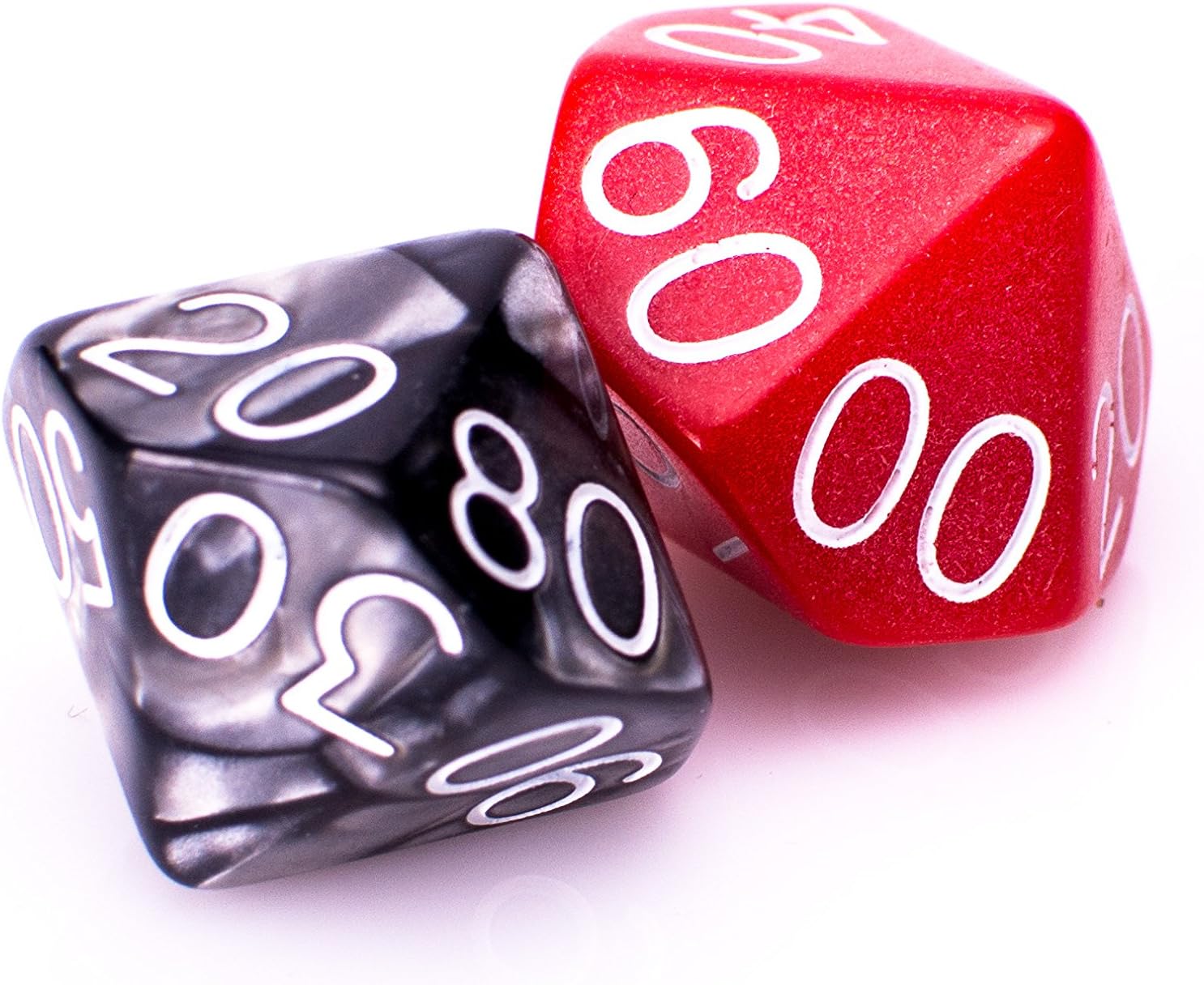 Includes 25 D100 10-Sided Percentile dice - guaranteed to all be factory first dice. Dice colors vary between light blue, blue, green, red, white, teal, yellow, black, orange, and purple. Finishes vary between swirled patterns, translucent, and opaque dice. Our polyhedral dice are inspected for quality control to deliver only the best dice to our customers. You won't find cracked, over-sized, chipped, unusable or damaged dice here.