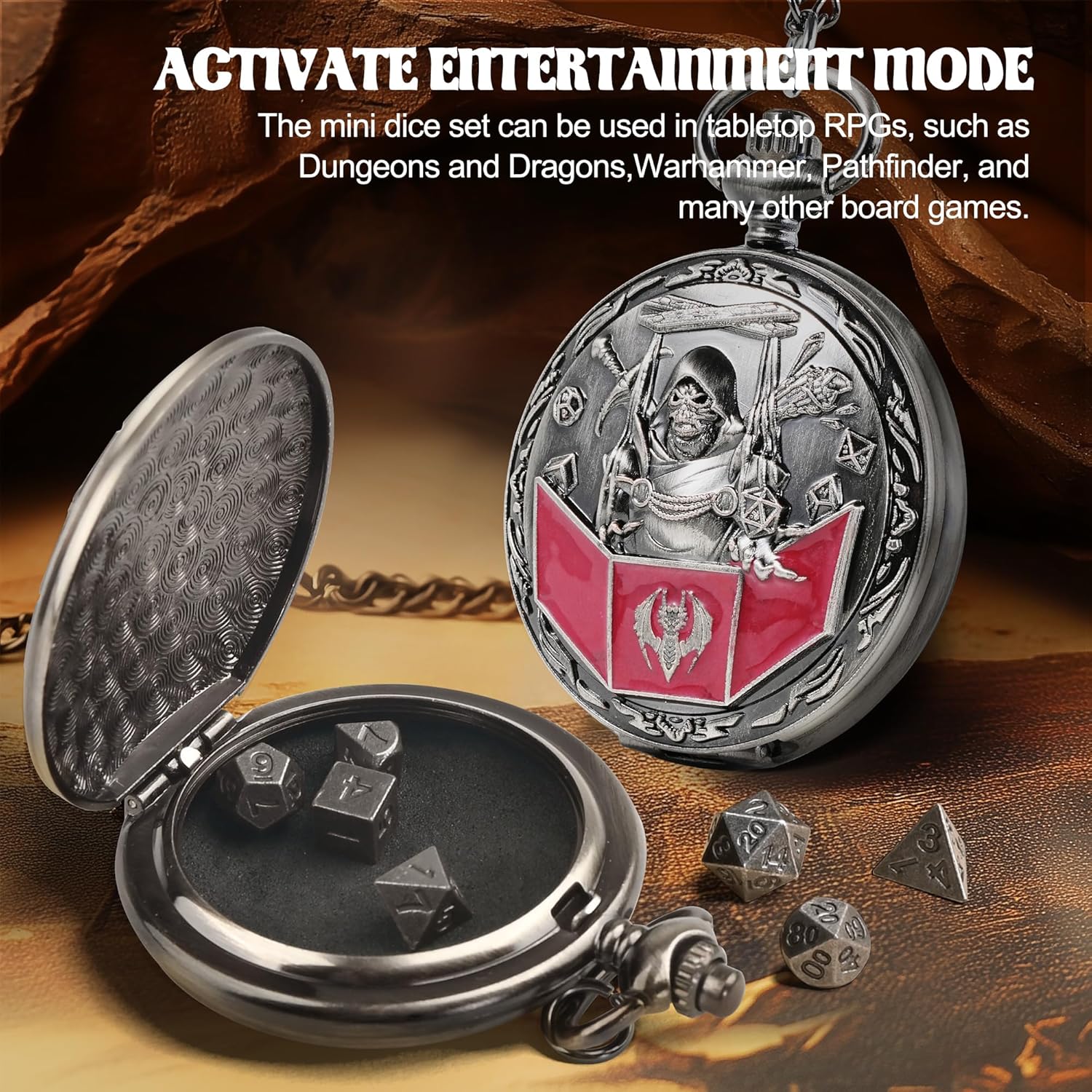 | Set Name | Kabinka D&D Dice Set with Pocket Watch Shell, 7Pcs Polyhedral Dice Set |