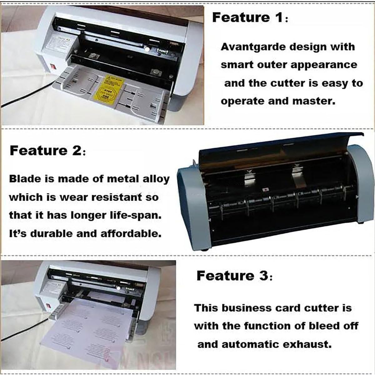 The Electric Business Cutter Card Machine is a professional paper trimmer designed for precision and efficiency. With an adjustable cutting margin ranging from 5 to 15mm, this tool allows you to customize your cuts to meet various specifications, guaranteeing perfect results with minimal waste. Specifications: - Name: Electric Business Cutter Card Machine - Compatible Paper Types: A4 210×297mm / 195×295mm (for business card paper weighing up to 300g) - Business Card Cutting Size: Standard 90mm × 54mm - Adjustable Margin: 5-15mm - Tool Lifespan: ≥100,000 cuts - Mechanical Accuracy: ≤0.2mm - Cutting Speed: 30-40 pieces per minute - Machine Dimensions: 475mm×280mm×220mm (L×W×H) - Weight: 8.2kg - Condition: New - Unit Count: 1 - Standard Product ID: 1 Package Includes: - 1 Automatic Business Card Cutter Operation Guide: - Lay the printed business card paper (standard A4: 210mm x 297mm) flat in the vertical direction. Maintenance Tips: 1. Always turn off the power switch and unplug the machine before cleaning. 2. Verify that the business card is properly aligned before cutting.
