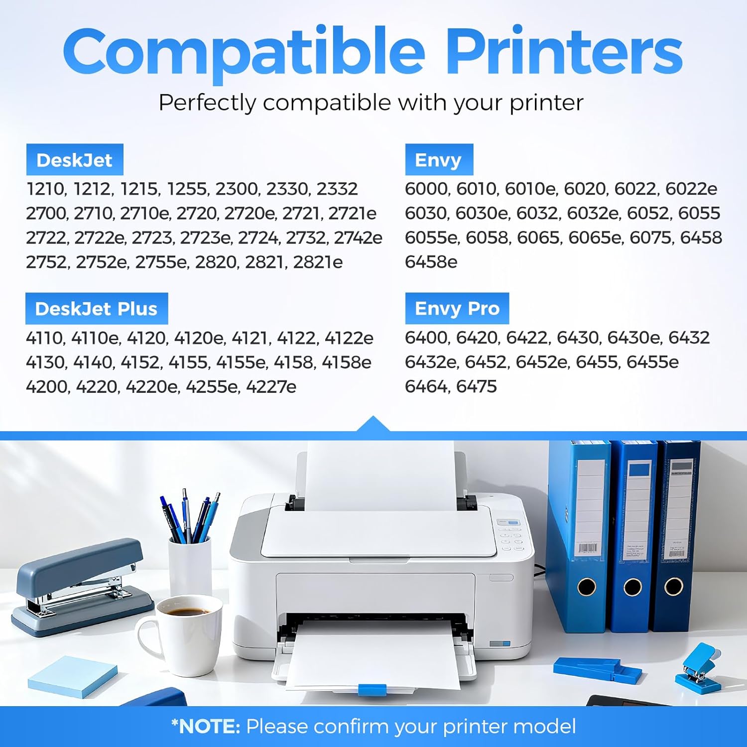 | Compatible Devices | DeskJet: 1210 1212 1215 1255 2300 2330 2332 2700 2710 2710e 2720 2720e 2721 2721e 2722 2722e 2723 2723e 2724 2732 2742e 2752 2752e 2755e 2820 2821 2821e; DeskJet Plus: 4110 4110e 4120 4120e 4121 4122 4122e 4130 4140 4152 4155 4155e 4158 4158e 4200 4220 4220e 4255e 4227e; Envy: 6000 6010 6010e 6020 6022 6022e 6030 6030e 6032 6032e 6052 6055 6055e 6058 6065 6065e 6075 6458 6458e; Envy Pro: 6400 6420 6422 6430 6430e 6432 6432e 6452 6452e 6455 6455e 6464 6475 |