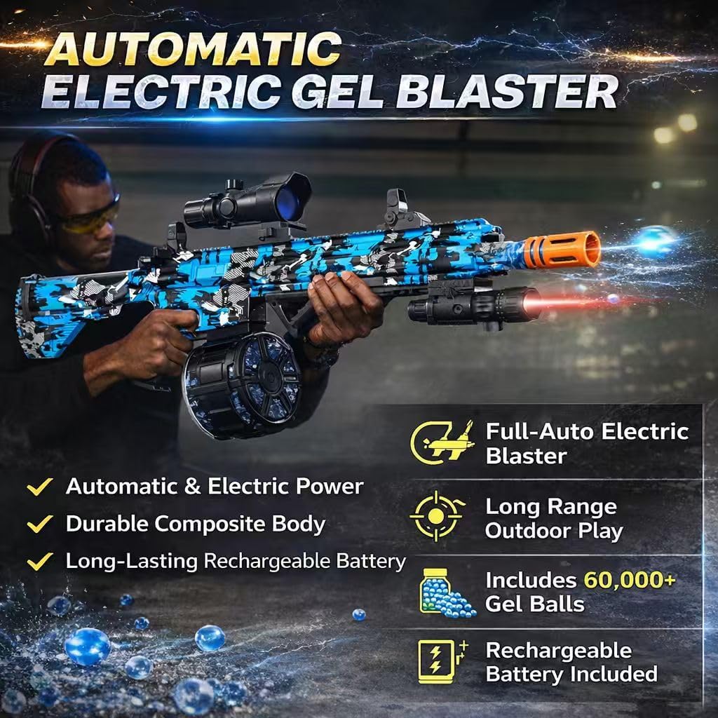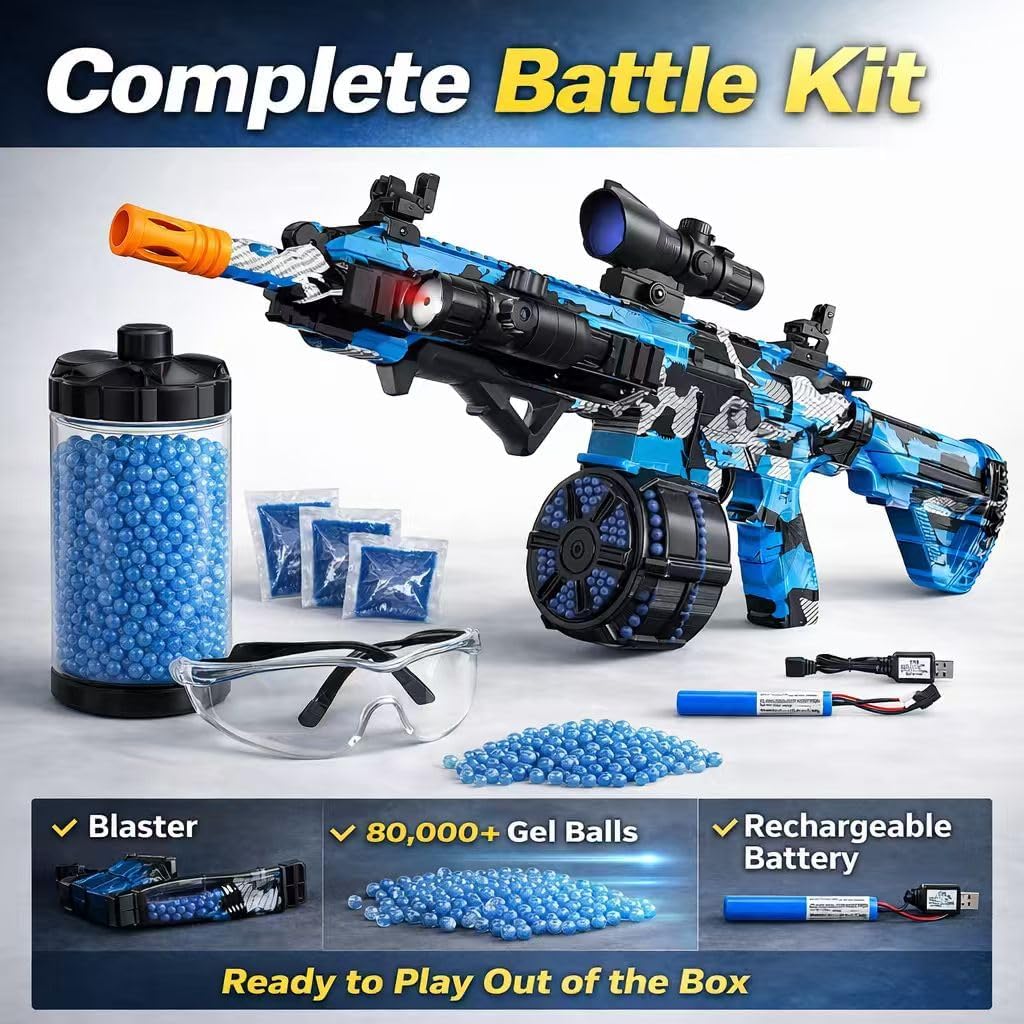 | Included Components | 60000+ darts, Battery and Charger, Gel Ball Blaster, Goggles, Scope, IR |
