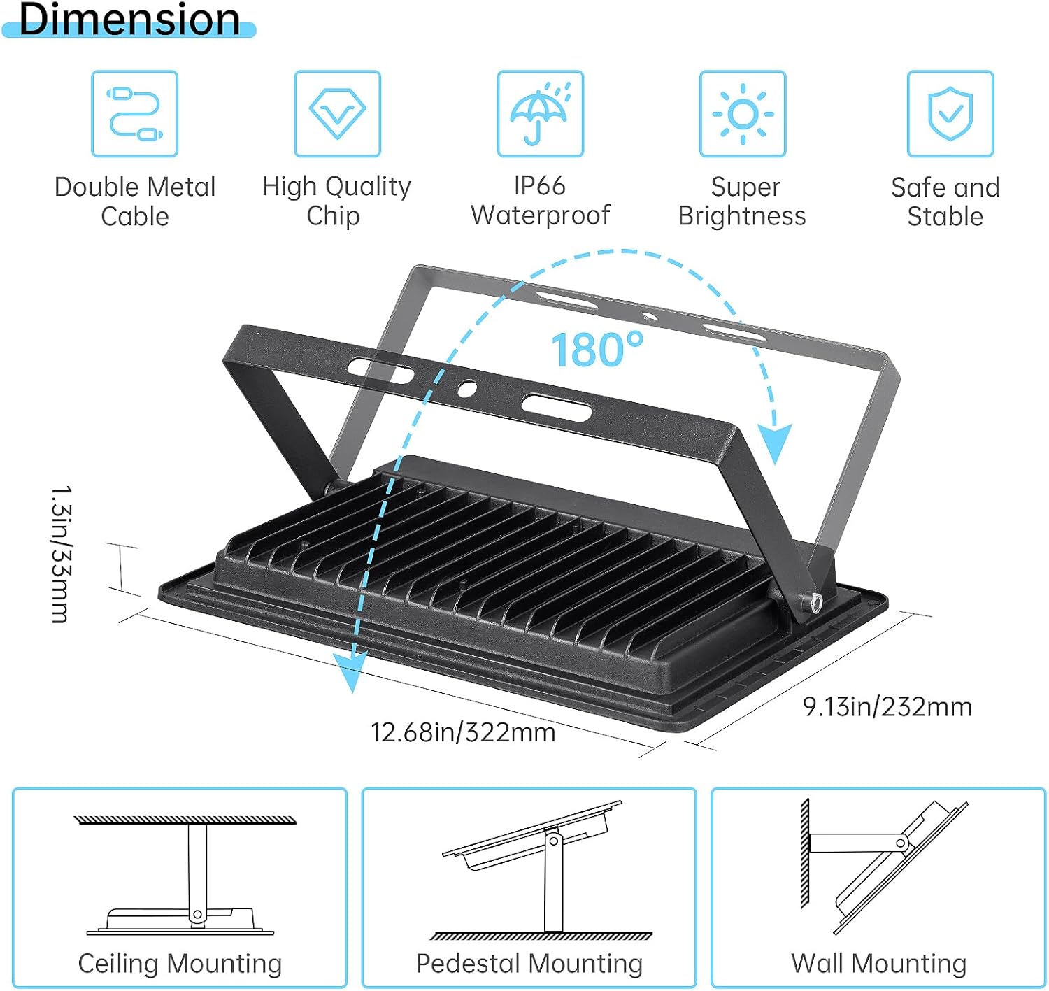 | Specific Uses For Product | Outdoor flood lights for courtyards,led work lights for warehouses,led security lights outdoor,150W Plug in Outside Work Light,led exterior lights,Portable flood light on the wall,led spotlights for shop, exterior flood lamps for indoor |