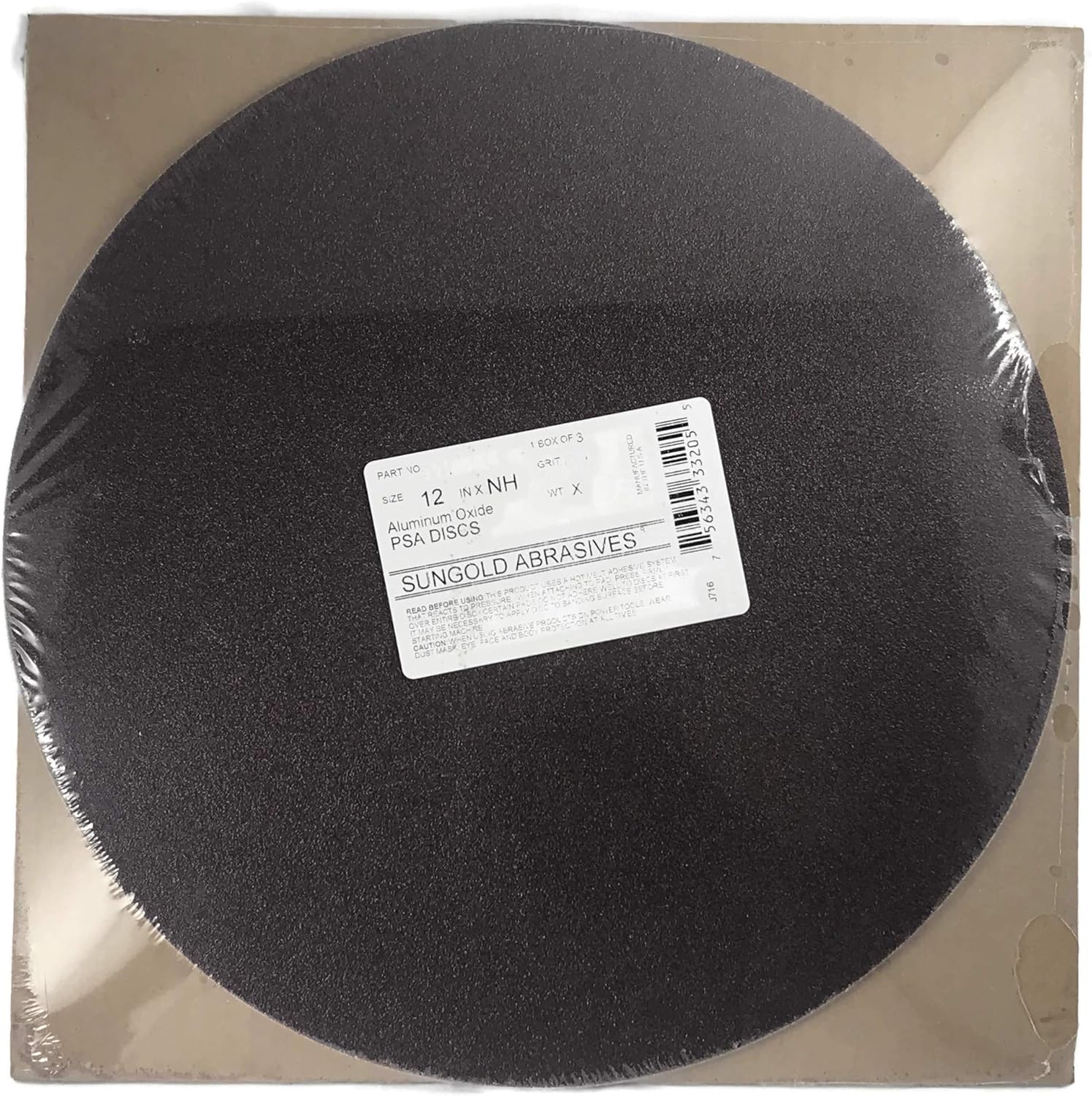 Sun gold 12-Inch Cloth Discs for metal platen stationary sanders. X weight backing for extra strength and tear resistant. Conveniently packed individually with a liner for extra long storage life.