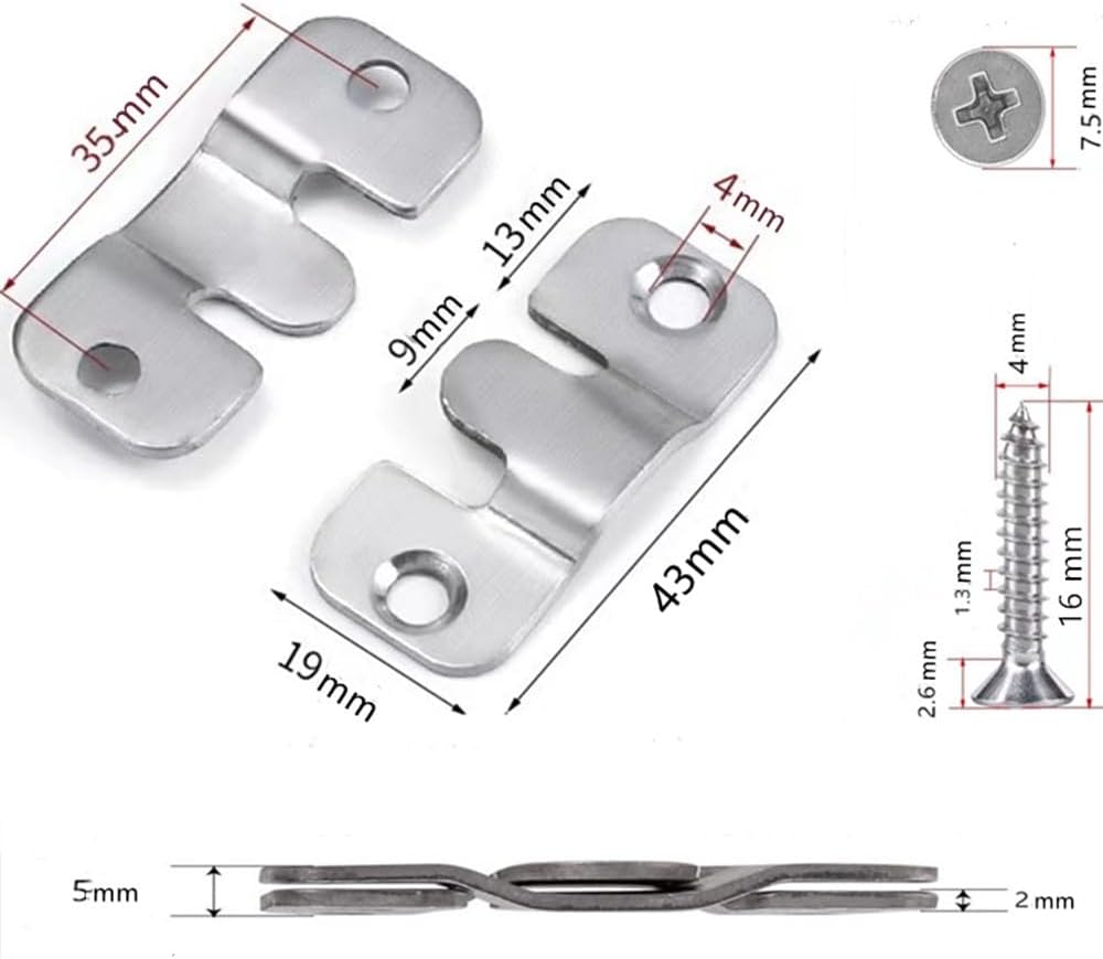 8 Set Stainless Steel Flush Mount Bracket-Picture Hangers-Headboard Wall Mount Hardware-Wall Mount Hardware- Interlocking Z Clips