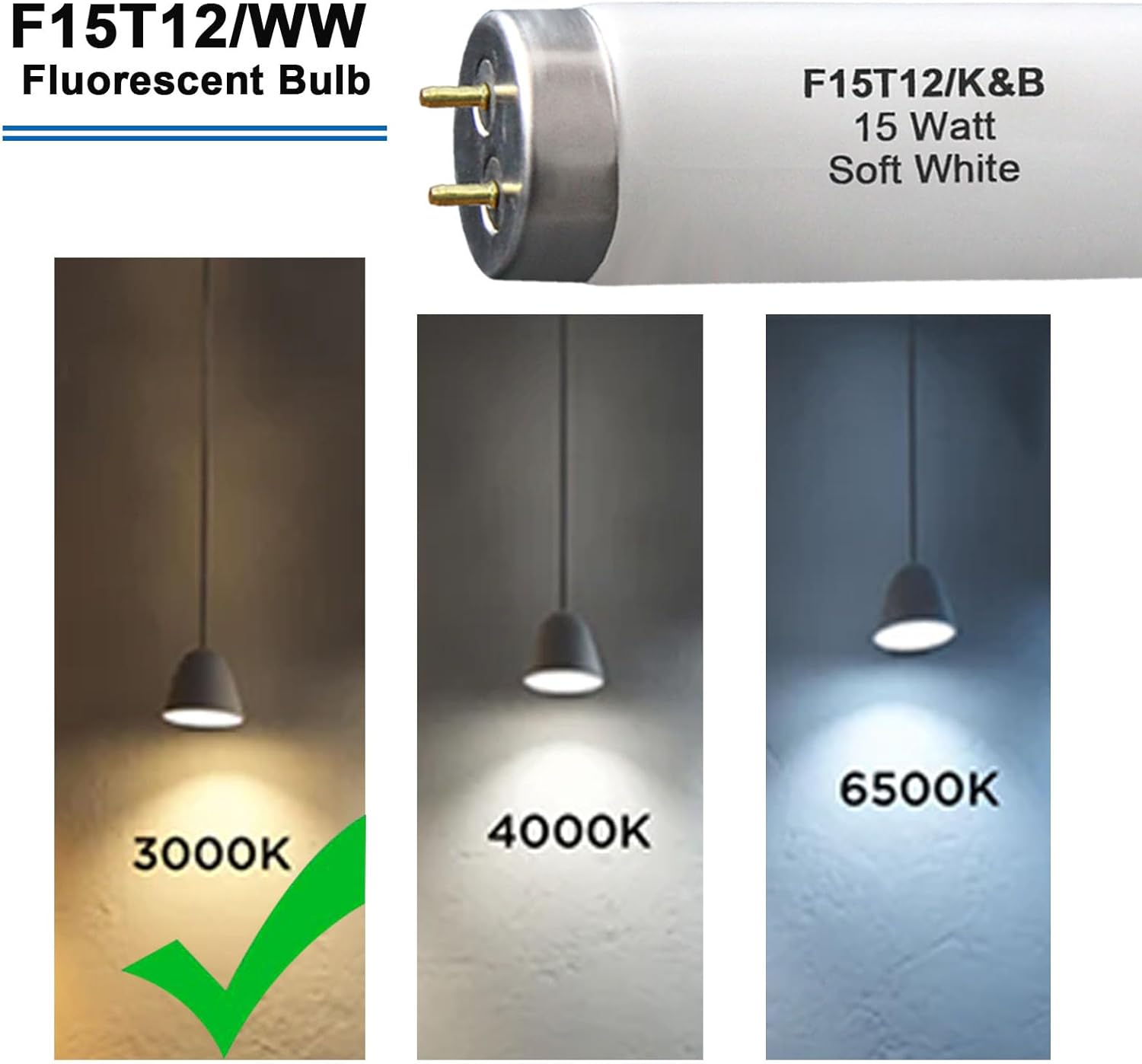 Illuminate your space with these high-quality T12 linear fluorescent bulbs. Each 18-inch tube delivers 15 watts of soft white light at 3000K color temperature, perfect for creating a warm, comfortable atmosphere. The G13 medium bi-pin base ensures compatibility with standard fluorescent fixtures. These bulbs serve as direct replacements for Philips 141465 F15T12/WW models, making upgrades simple and straightforward. The 4-pack offers excellent value for residential or commercial applications. These linear fluorescent tubes provide consistent, flicker-free illumination ideal for kitchens, workspaces, utility rooms, or garages. The familiar T12 format means these bulbs will fit perfectly in existing T12 fixtures without any modifications needed. Experience reliable, uniform lighting that helps reduce eye strain during extended use. Remember to handle with care during installation and dispose of old bulbs properly according to local regulations.