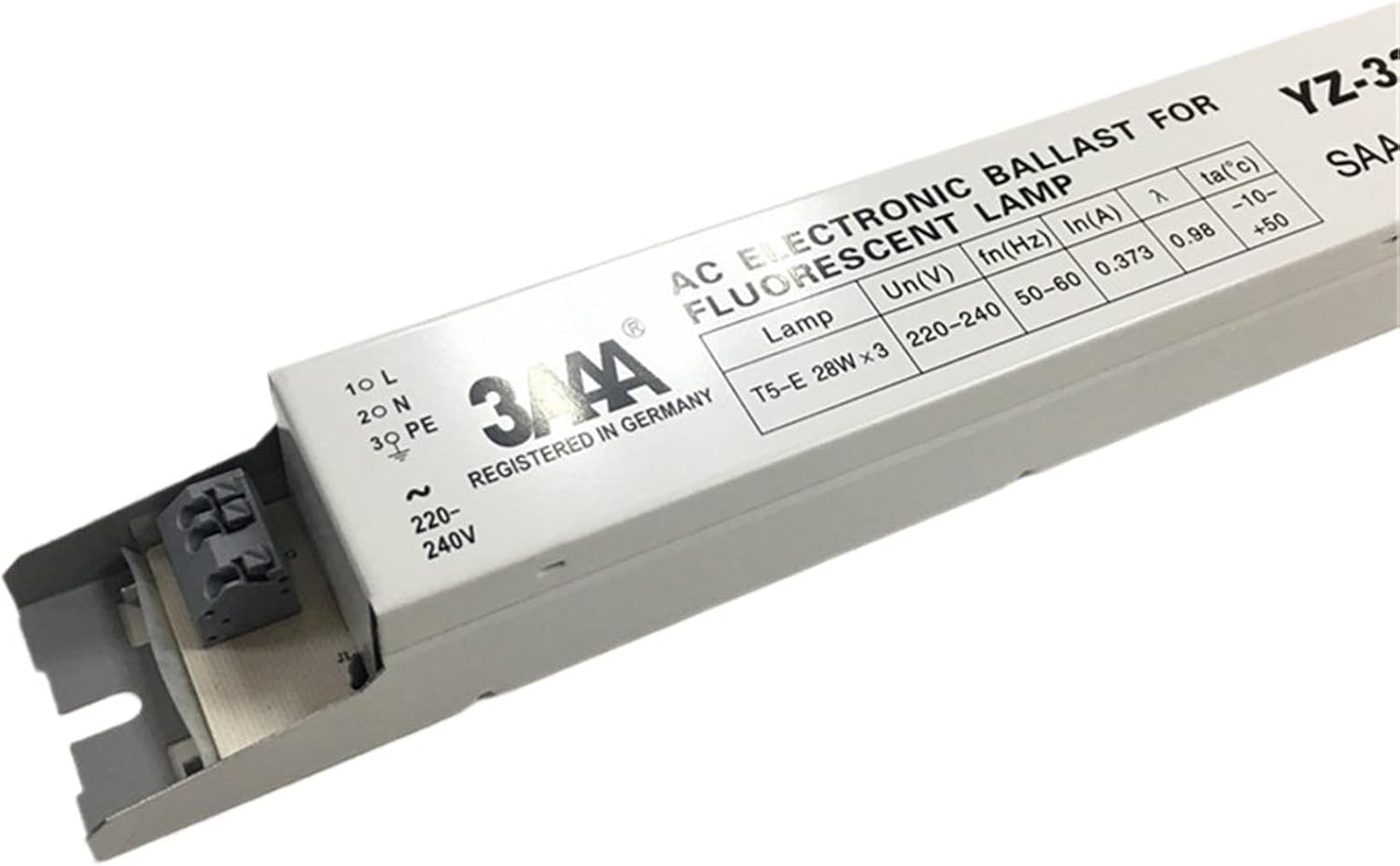 Ballasts1PCS YZ-328EAA T5 28W fluorescent tube special electronic ballast one to three rectifierModel: YZ-328EAAFeatures:-Metal case, light weight- Super good lamp matching, no strobe- Extend lamp life and lengthen lamp life cycle- very good energy saving effect- abnormal state protection- Suitable for emergency lighting control systems==========Model Number : YZ-328EAABallast : electronicItem Type : BALLASTS
