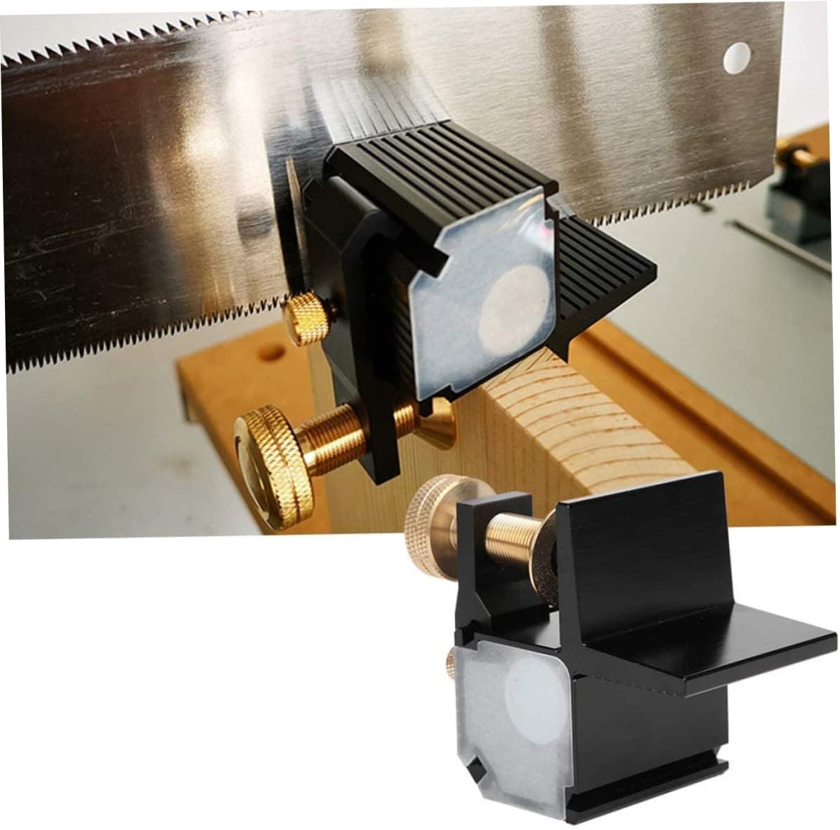 Description The saw guide of the Dovetail Guide is adjustable, which make it fits for all kinds of backless saw. Our Dovetail Rail Saw Gauge will make the dovetail sawing work easier, accurate and save time. Our Magnetic Dovetail Guide Gauge is suitable for dovetail sawing woodworking diy work and it will be a good helper for you. Features Dovetail guide gauge -Color: Black. -Material:Aluminum Alloy,Brass. -Size: 74*54 mm/2.91*2.13 inch. Note: 1. 1 inch=2.54cm/1cm≈0.393inch. 2. Please allow 1-3 cm error due to manual measurement. Pls make sure you do not mind before you bid. Package Including 1 * Dovetail guide gauge