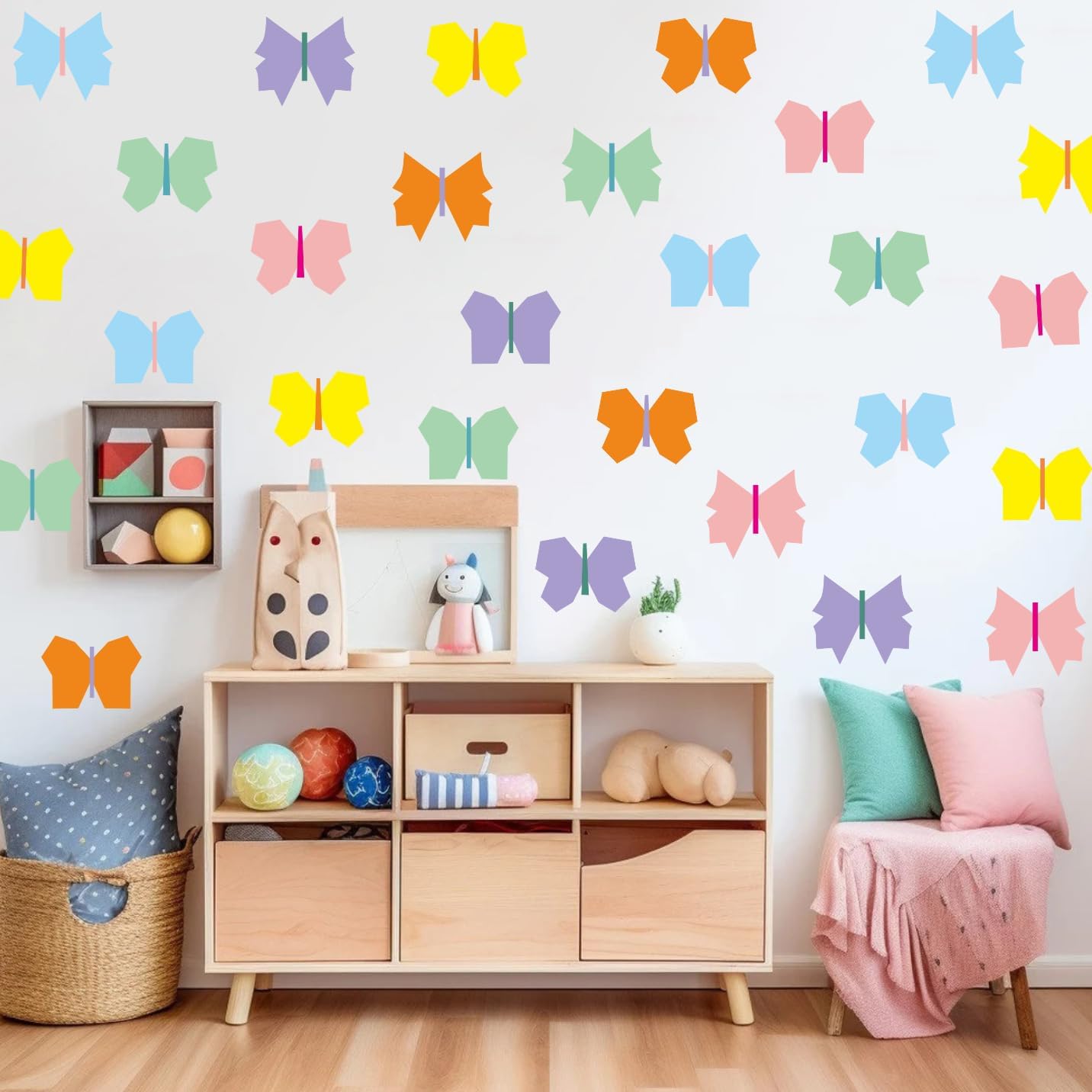 This abstract shape wall decals will be a great gift for your wall decoration, which can make your home more bright Product Information ➽Material: Vinyl ➽Size: The abstract butterfly size:5.5”x4.9". Sheet size is 35.4×11.8 inch x2 ➽Quantity: Total 28pcs ➽Color: As shown in the picture (High definition printing) ➽Element: different butterfly Decoration Scene ➽nursery room ➽living room ➽playroom ➽kitchen ➽classroom ➽bedroom ➽Toddler room ➽kindergarten ➽farmhouse ➽window> Notes: ➽Manual measurement, please allow for slight size errors ➽Due to differences in display screens, there may be slight color errors