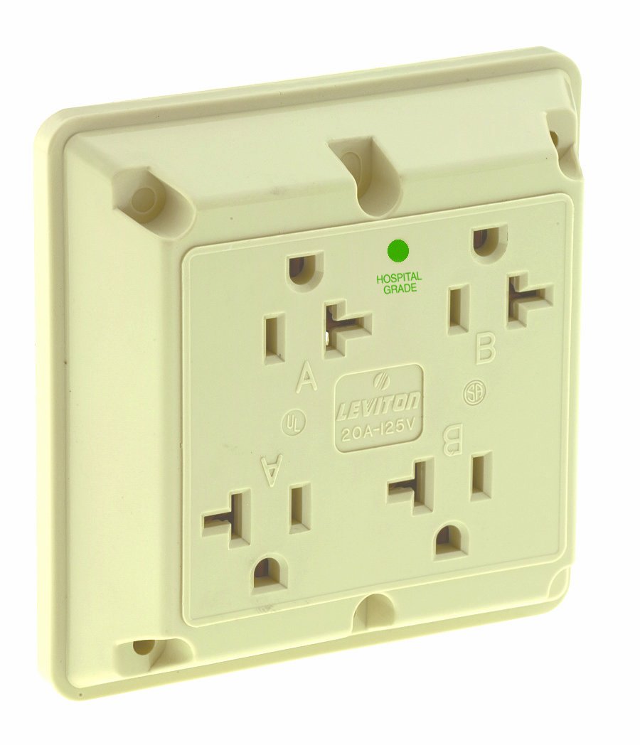 Product Description NYLON (BODY/FACE) MATERIAL; WHITE COLOR; 5-20R CONFIGURATION; 3 WIRE(S); INDUSTRIAL, HOSPITAL GRADE; UL 498, CSA C22.2, ISO 9001 APPROVAL; 125 VOLT VOLTAGE RATING; 20 AMP CURRENT RATING; GROUNDING; 2 POLE(S); TRADITIONAL[R] BRAND; STRAP MATERIAL STEEL From the Manufacturer All Leviton Hospital Grade Receptacles undergo the most stringent UL testing to assure continuous, safe operation in any application requiring high-abuse tolerance, including health care facilities, manufacturing plants and schools. 20 Amp, 125 Volt, Industrial Series Extra Heavy Duty Hospital Grade, 4-In-1 Receptacle, Straight Blade, Grounding, White.